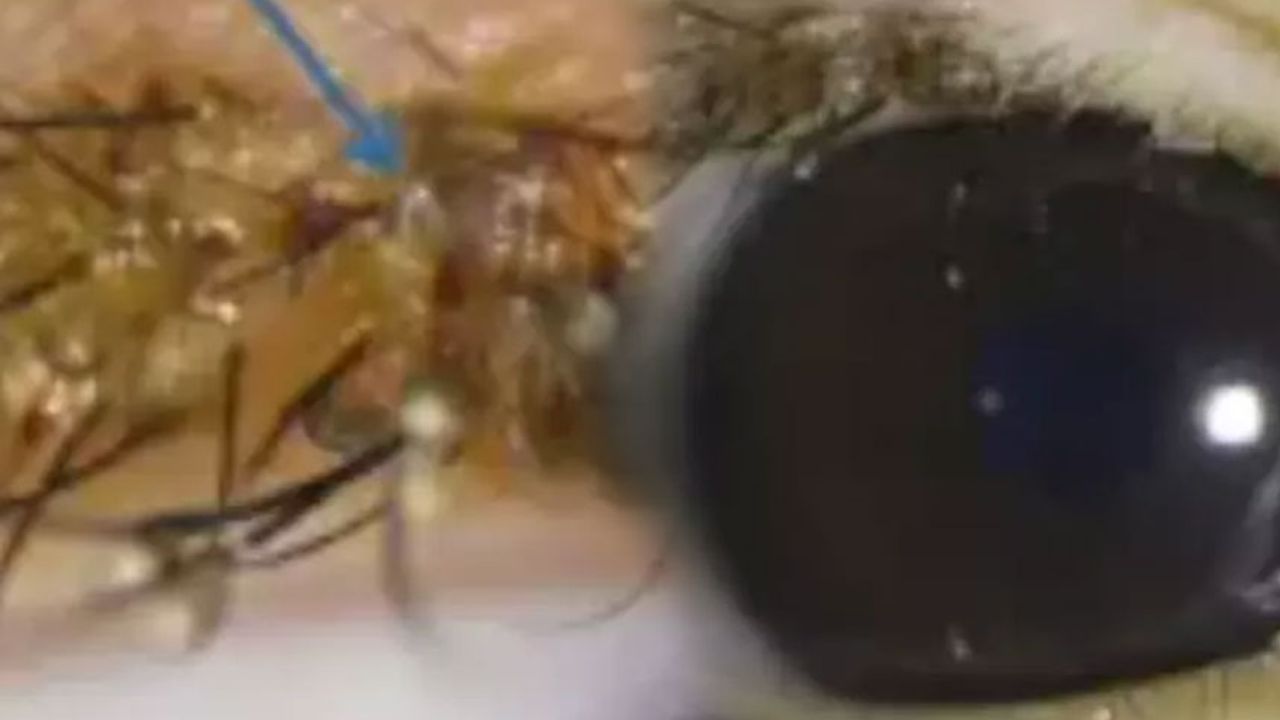 Doktorlar yaptıkları incelemelerin ardından 3 yaşındaki çocuğun sağ gözündeki kirpiklere sıkıca yapışmış çok sayıda sirke ve bit buldu. Ailesi çocuğun sık sık kumda oynadığını ve ellerine yıkamadan gözlerine dokunduğunu söyledi.