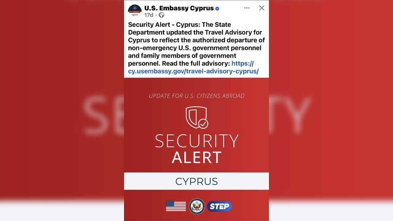 Yetkililer, Kıbrıs’ta bulunan ABD vatandaşlarına, büyükelçilik ve konsolosluk kanalları üzerinden yapılacak yeni bilgilendirmeleri izlemeleri çağrısında bulundu.