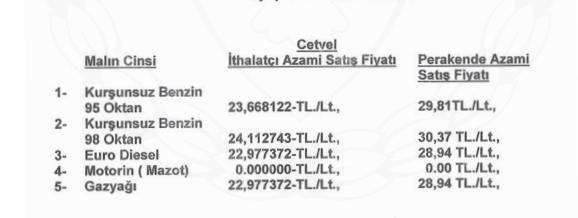 Zamlı fiyatlar Resmi Gazete'de yayımlandı.
