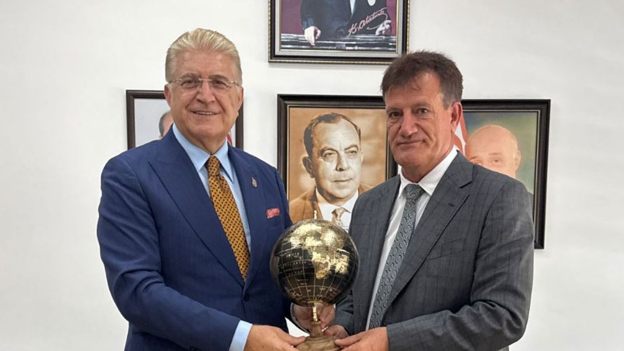Bayındırlık ve Ulaştırma Bakanı Erhan Arıklı, İstanbul Aydın Üniversitesi Mütevelli Heyet Başkanı ve Kıbrıs Aydın Üniversitesi Onursal Başkanı Prof. Dr. Mustafa Aydın'ı makamında kabul etti.