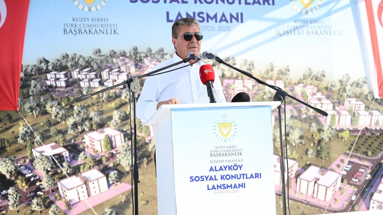 “30 Yıldır ülkemizde sosyal konut yapılmadı. 30 yıl önce de yapan Dr. Derviş Eroğlu’ydu, kendisini buradan selamlıyorum. O Günden sonra bir ilki daha gerçekleştiriyoruz. İlk temeli Güzelyurt’ta atıldı. Tüm bunları Müteahhitler Birliği’nin kooperatifi ile yapıyoruz. Güzelyurt’ta yoğun katılımla oldu çekilişler ve kimsenin rozetine bakılmadı, tasdik memurlarının eşliğinde yapıldı. Sosyal konutlar 39 Bin 900 sterlin ve düşük faizli Türk Lirası kredi paketi hazırladık.”