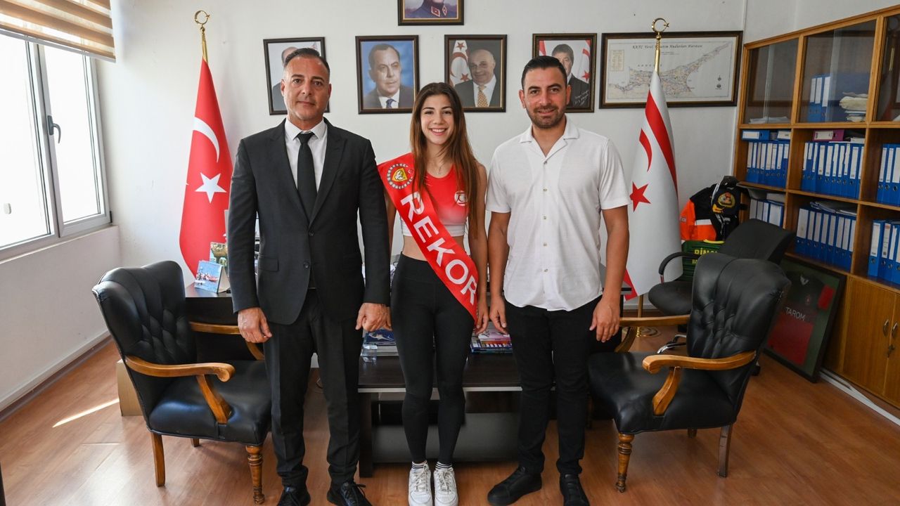 Hüseyin Cahitoğlu, kırdığı rekorlar ve elde etmiş olduğu başarılardan dolayı genç atleti kutlayarak tebrik etti.
