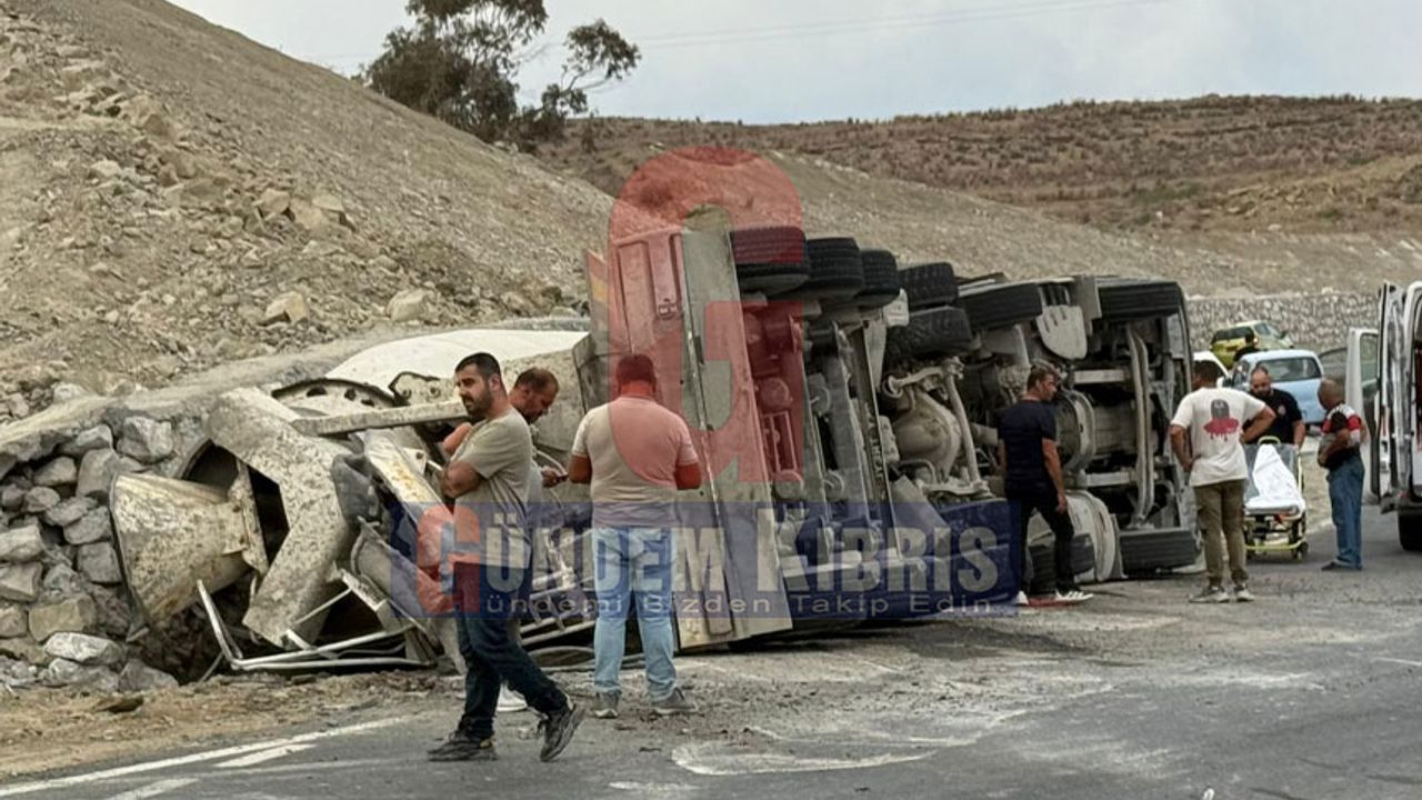 "02.08.2024 tarihinde, saat 16.00 sıralarında, Gönyeli - Boğazköy, Yeni Kuzey Çevre Yolu’nun bağlantısı noktası olan Kurakçıl Çemberinde, Hamza EKİN (E-54), yönetimindeki YK 854 plakalı beton mikseri ile Boğazköy istikametine doğru seyrettiği sırada dikkatsizliği sonucu çembere süratli girmesi neticesinde direksiyon hakimiyetini kaybederek sol yan kısmı üzerine devrilmiştir. Kaza sonucu yaralanan araç sürücüsü kaldırıldığı Lefkoşa Dr Burhan Nalbantoğlu Devlet Hastanesinde tedavisi halen sürüyor. Soruşturma devam etmektedir"