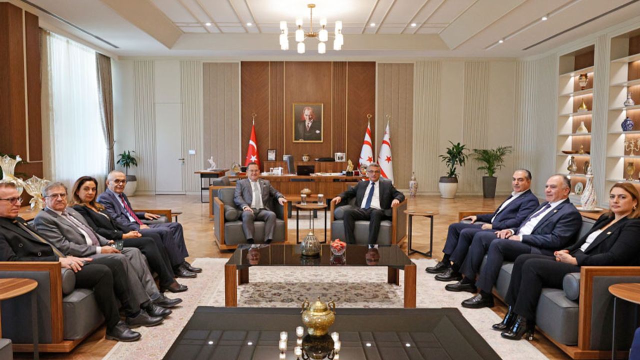 Cumhurbaşkanlığından verilen bilgiye göre, KTTO heyeti, Cumhurbaşkanı seçilmesi dolayısıyla Erhürman’ı kutladı.
