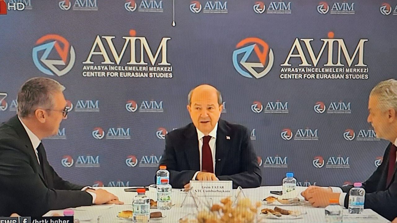 Avrasya İncelemeleri Merkezi'nde, emekli büyükelçiler ve üst düzey bürokratların da yer aldığı yuvarlak masa toplantısına katılan Cumhurbaşkanı Tatar, Kıbrıs konusundaki son gelişmeleri aktardı.