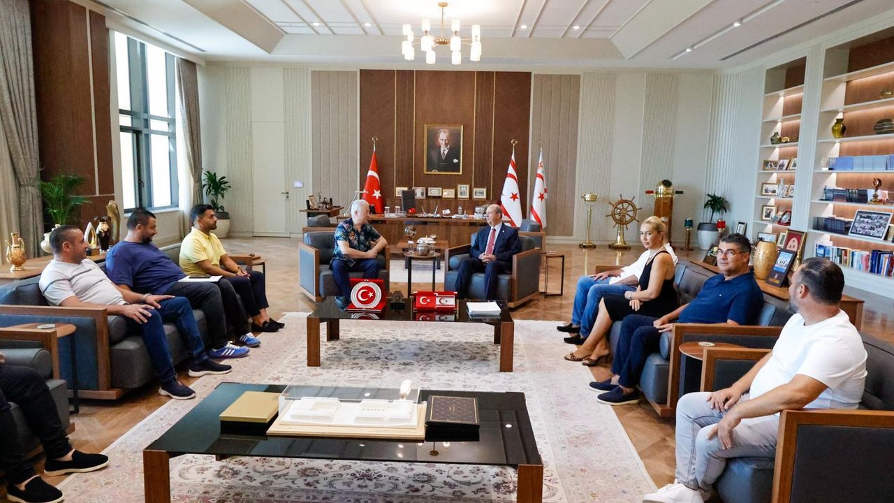 Cumhurbaşkanı Ersin Tatar, Kıbrıs Türk Emlakçılar Birliği Başkanı Hasan Sungur ve beraberindeki heyeti kabul ederek, görüştü.