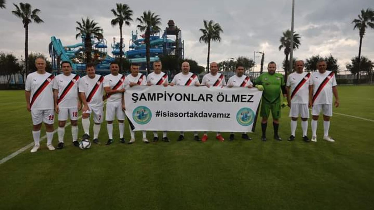 Seramonide KKTC ve Türkiye bayrakları ile fotoğraf çekilirken, Cumhuriyet Meclisi takımı “Şampiyonlar Ölmez. İsias ortak davamız” yazılı pankart ile sahada yer aldı.