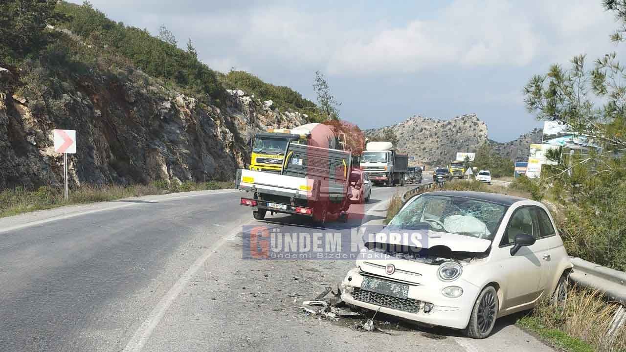 Polisten edinilen bilgiye göre, 26 Ocak 2026 tarihinde saat 10.00 sıralarında, M.T. (E-42) yönetimindeki AA 651P plakalı kamyon araç, Girne istikametine doğru seyrettiği sırada sağa meyilli viraja geldiğinde dikkatsizliği sonucu direksiyon hâkimiyetini kaybederek yolun sağına geçti. Kamyon araç, bu esnada karşı istikametten gelmekte olan A.K. (K-29) yönetimindeki PA 770 plakalı salon aracın sağ yan kısmına çarptı.