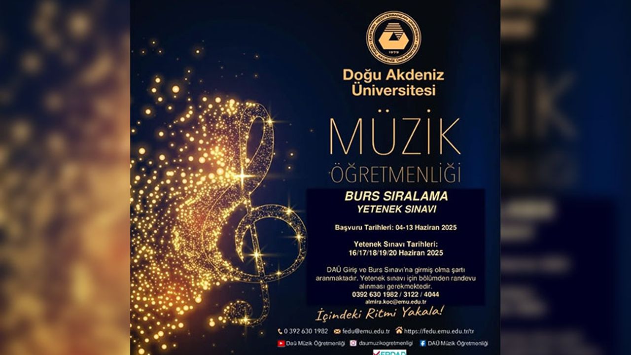 DAÜ’den verilen bilgiye göre, Müzik Öğretmenliği Lisans Programı KKTC uyruklu (çift uyruklular dahil), KKTC’de veya KKTC dışında örgün eğitim veren lise veya dengi bir okul mezunu veya mezun adayı öğrenciler ile lise öğrenimini KKTC’de örgün eğitim veren bir eğitim kurumunda tamamlayarak mezun olan veya olacak olan TC uyruklu öğrenciler için Burs Sıralama Yetenek Sınavı yapılacak.