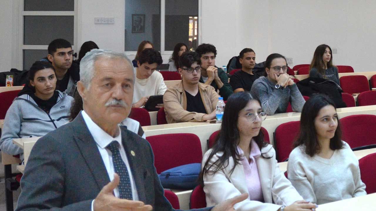 Etkinlik, DAÜ Dr. Fazıl Küçük Tıp Fakültesi Öğretim Üyesi Özge Eker tarafından yürütülen “İklim Değişikliği: İnsan Sağlığına Etkileri ve Sürdürülebilir Yaşam” isimli seçmeli ders kapsamında organize edildi. Sunum ile çevre sağlığı ile halk sağlığı arasındaki güçlü ilişkiye dikkat çekilerek, bu alandaki farkındalığın artırılması amaçlandı. Söz konusu etkinliğe, Dr. Fazıl Küçük Tıp Fakültesi Dekanı Prof. Dr. Nilüfer Güzoğlu’nun yanı sıra fakülte öğretim üyeleri ve öğrencileri katıldı.