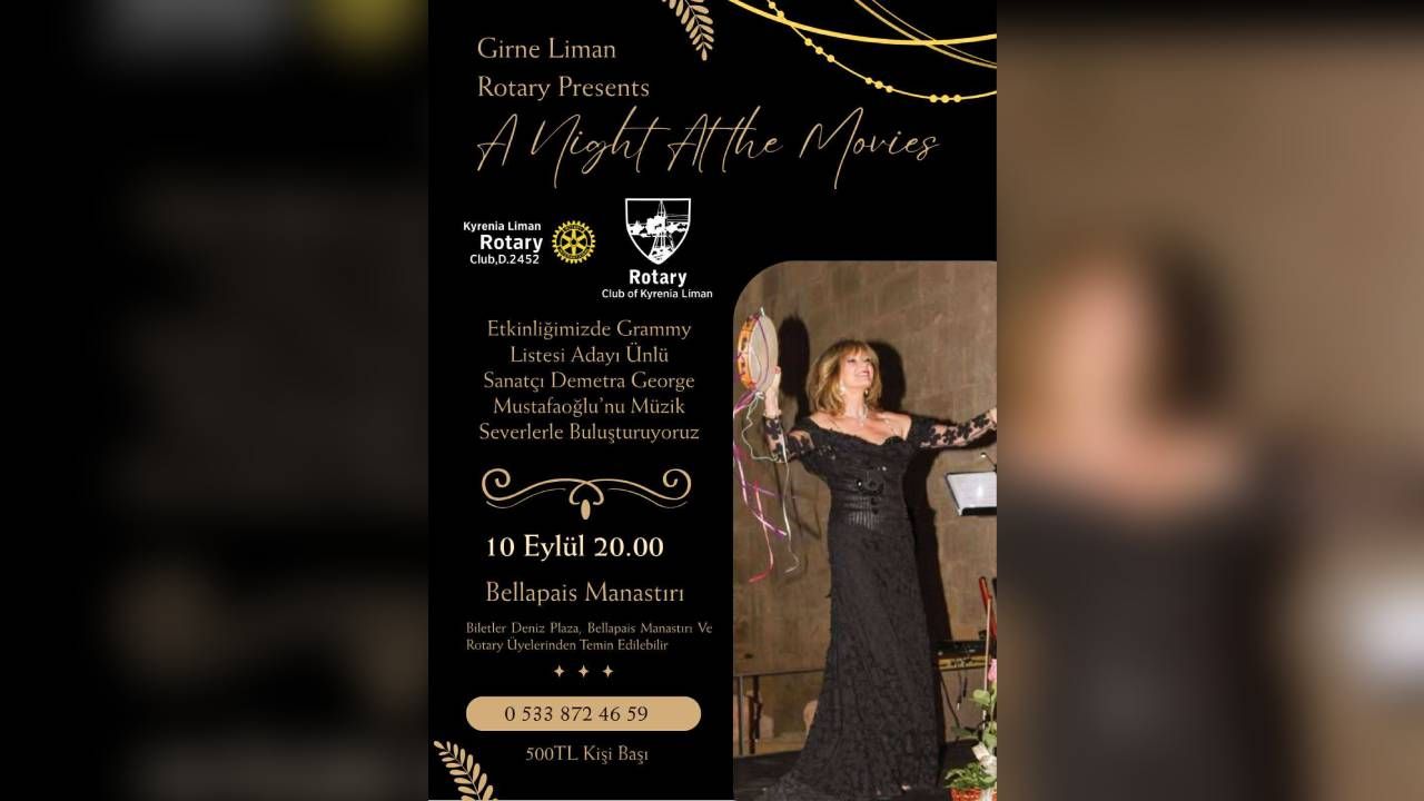 Kulüpten verilen bilgiye göre, “Grammy Listesi adayı” sanatçının 10 Eylül’de saat 20.00’de gerçekleştirilecek konserinin biletleri 500 TL’den satılıyor. Biletler Deniz Plaza, Bellapais Manastırı ve Rotary üyelerinden temin edilebiliyor.