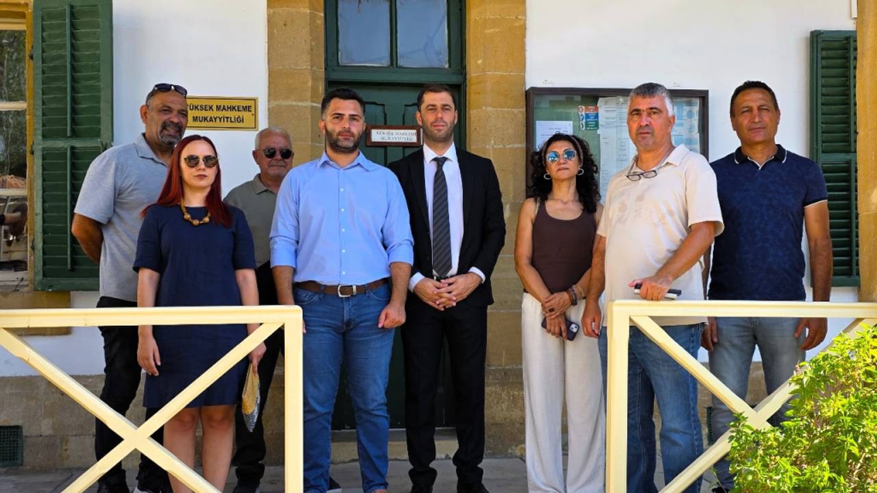 Başvuru öncesinde DEV-İŞ Başkanı Semih Kolozali ile Avukat Serkan Mesutoğlu, KTOEÖS Başkanı Selma Eylem ve Avukat Cansu Nazlı Lefkoşa Mahkemeleri önünde basına açıklama yaptı.