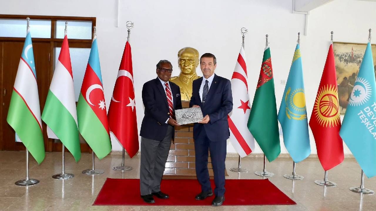 Konuk heyete, Kıbrıs Türk halkının verdiği varoluş mücadelesi ve haklı davasında gelinen aşama hakkında bilgi veren Dışişleri Bakanı Ertuğruloğlu, Kıbrıs Türkleri’nin egemen eşitliğinin ve eşit uluslararası statüsünün teyidini öngören iki devletli çözüm vizyonunu anlattı.