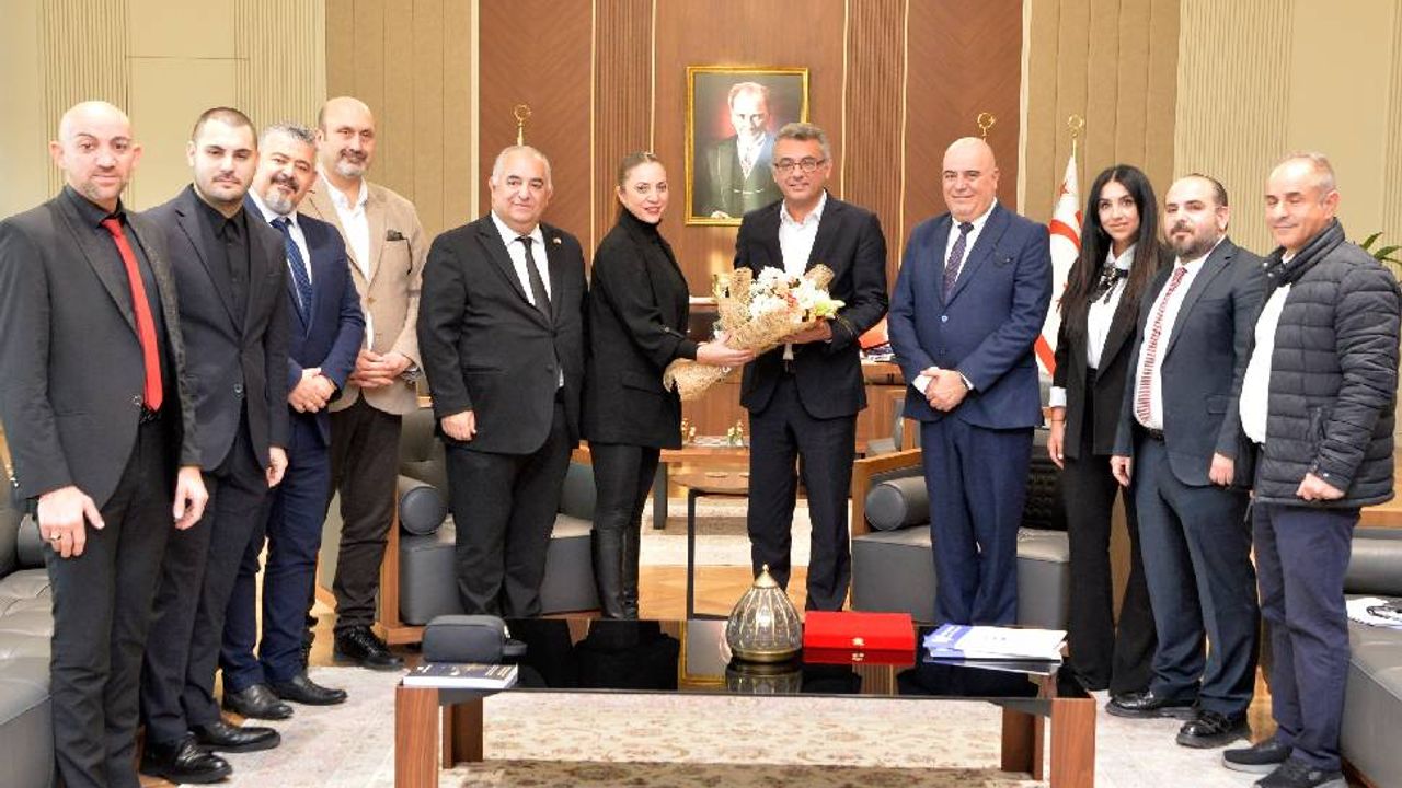15 Kasım Üniversitesi Rektörü Prof. Dr. Mustafa Menekay da, Cumhurbaşkanı Erhürman’a görevinde başarılar diledi ve ziyaretin anısına üniversitenin plaketini takdim etti.