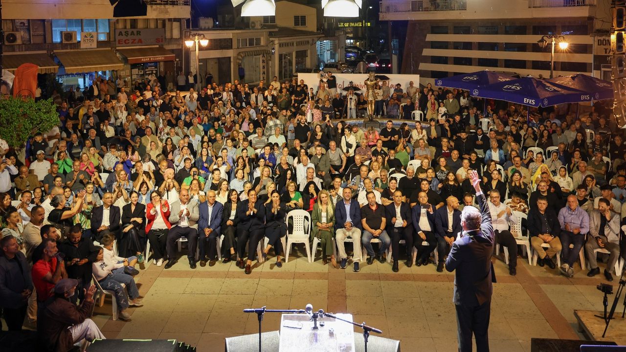 Yağışlı havaya rağmen meydanı dolduran Güzelyurt halkına teşekkür ederek sözlerine başlayan Cumhurbaşkanı adayı Tufan Erhürman, “Güzelyurt, bu akşam adın gibi güzelsin… Adından bile daha güzelsin” dedi. “Uzun bir yolu yürüyerek bugüne geldik. Sayılı gün kaldı… Günleri sayıyoruz. Çok emek verdiniz, çok sabır gösterdiniz” diyen Erhürman, “Gelin yol arkadaşı olalım, bu yolu birlikte yürüyelim” davetini kabul eden ve destek veren herkese yürekten teşekkürlerini sundu. Cumhurbaşkanlığı makamının tarafsız bir makam olduğunu hatırlatan Erhürman, sadece siyasi düzeyde değil, örgütlerden, sendikalardan da gelen destekleri anımsattı. Tufan Erhürman, “20 Ekim’de tarafsız ve halkını kucaklayan bir cumhurbaşkanlığı olacak. Ama biz bugün halkımızla kucaklaşarak, sağcı-solcu demeden iki şey için bir araya geldik: Bu topraklara ve çocuklarımıza duyduğumuz sevgidir bizi bir araya getiren. Bu toprakların, bu çocukların gailesini çekmeyenler bunu anlamazlar. Onlar varsın anlamasınlar; biz yüreklerimizde bunu hissediyoruz. Bu yolu birlikte yürümeye devam ediyoruz” dedi.