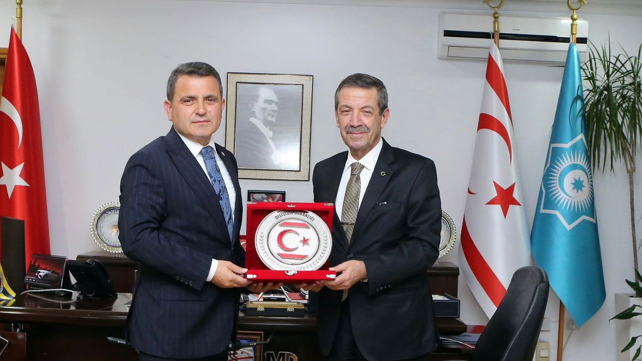 Bakanlıktan verilen bilgiye göre, temaslarda bulunmak üzere KKTC’ye gelen, Daire Başkanları Mustafa Bektaş ve Yusuf Kartal’ın da yer aldığı heyetle görüşen Ertuğruloğlu’na Enformasyon Dairesi Müdürü Peysan Arıkan da eşlik etti.