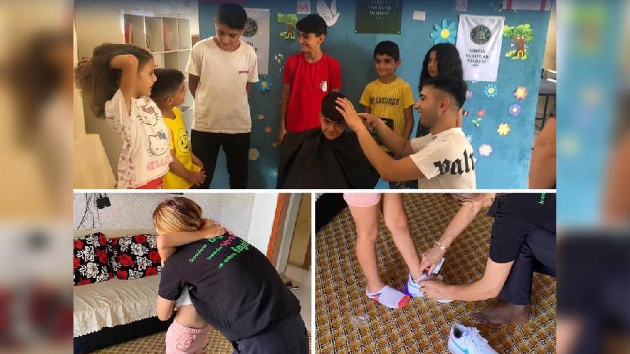 Evkaf, çocuklara bayramlık kıyafetler hediye etti, bölge iyilik evlerinde de kuaför eşliğinde çocukların saçları kesildi.