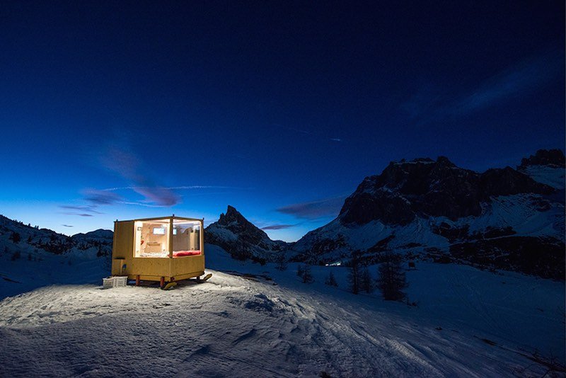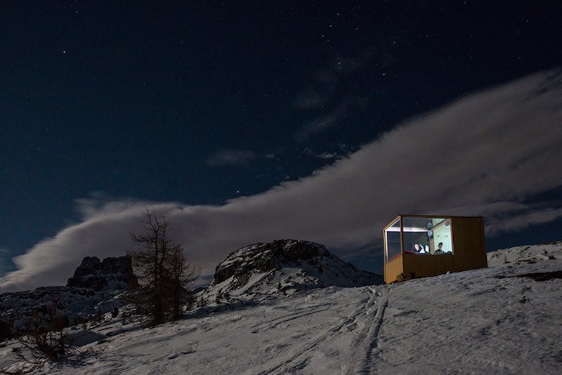 Yalnız, çift olarak veya küçük gruplar halinde kalabileceğiniz kulübeye karmobillerle veya kar ayakkabılarıyla yürüyerk gidiliyor.