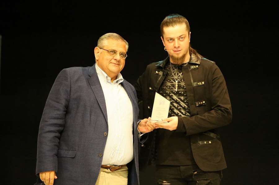DAÜ Rektörü Prof. Dr. Necdet Osam ve eşi DAÜ Eğitim Fakültesi Dekanı Prof. Dr. Ülker Vancı Osam’ın da ilgiyle izlediği gösteri sonunda Aref’e Rektör Prof. Dr. Osam tarafından plaket takdim edildi.