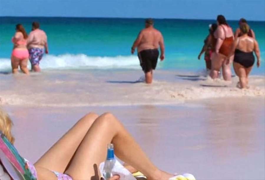 Bahamalar'da yeni açılan bir tatil köyü "geleneksel" olarak misafirlerinin aksine sandalyelerinden, yataklarına, havuzundan su sporlarına kadar bütün hizmetlerini fazla kilolular için hazırladı. Bir televizyon programı için hazırlanan bu otelde obez turistler için yok yok...