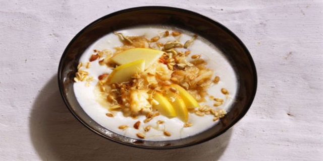 Yoğurt + yulaf ezmesi + ceviz = yulaf ezmesinin içerdiği lifin yapısı farklı olup sindirim sistemini farklı düzeyde çalıştırır. Böylece sindirim sisteminde olan problemleri aşmamızı kolaylaştırır. Ceviz ve yoğurt ile yulaf ezmesi metabolizmamızın maksimum düzeyde çalışması için en iyi anahtardır.