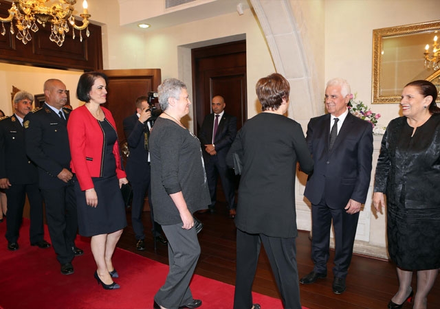 Cumhurbaşkanı Derviş Eroğlu’nun eşi Meral Eroğlu ile birlikte Cumhurbaşkanlığı’nda gerçekleştirdiği Kurban Bayramı tebrik kabulü, saat 10.30’da başladı ve yaklaşık 1 saat sürdü.