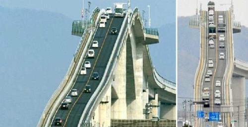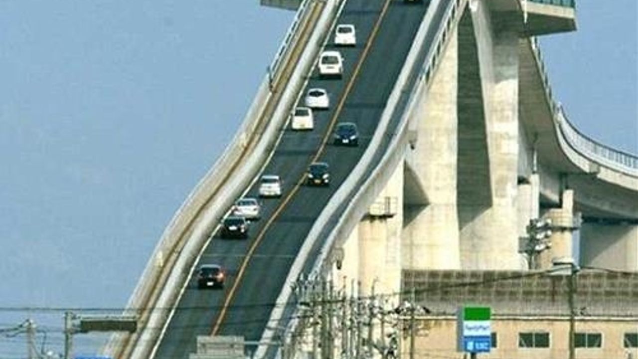 Normal şartlarda ‘yol’ denilen kavram, ‘üzerinde güvenli bir şekilde yolculuk yapılan düzlem’ olarak tanımlanabilir. Fakat Japon mühendisler, olayı ‘biraz’ yanlış anlamış olacak ki Dünya’nın en sürreal köprüsüne imza atmışlar.
