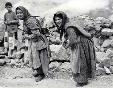 Yol yapımında çalışan Kıbrıslı kadınlar.