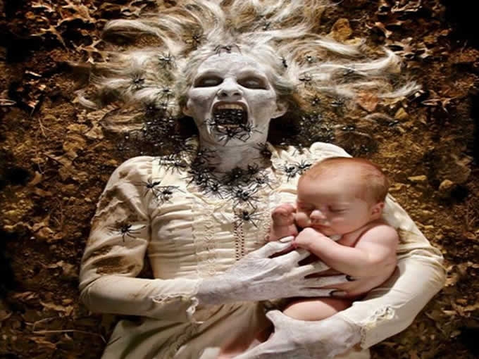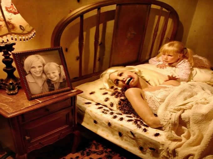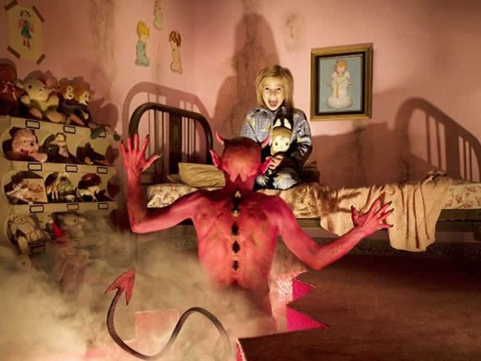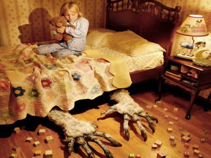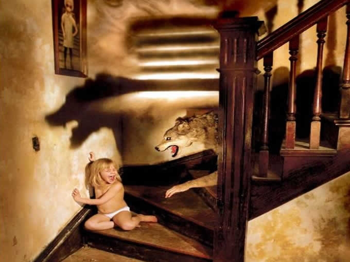 Fotoğrafların bazısında küçük kızlar, bir kurt tarafından saldırıya uğruyor; bazısında da yatak odalarından çıkan iblisle karşı karşıya kalıyor.