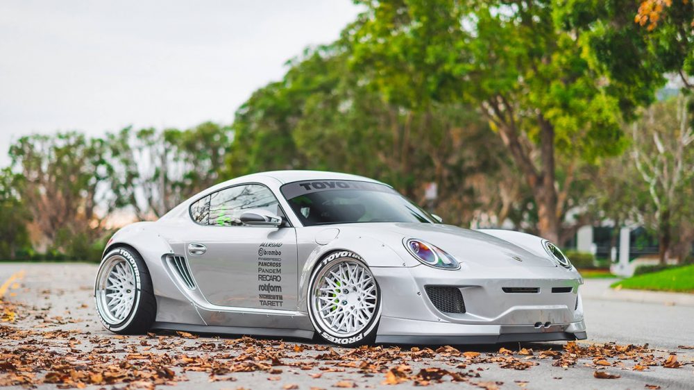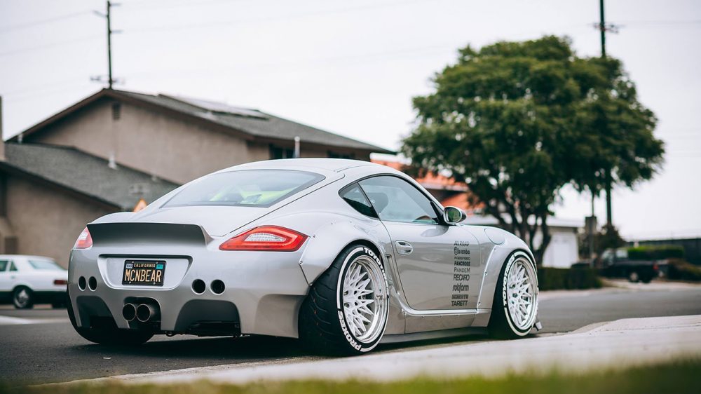 Aracın genişlik değerlerinde artış sağlayan çamurlukların genişletilmesiyle birlikte yere yakın ve oldukça geniş bir otomobil profili oluşuyor. Rotiform marka jantlarla birlikte yeni bir egzoz sisteminin görev yaptığı özel yapım Cayman’ın içerisinde Recaro yarış koltuğu yer alıyor.