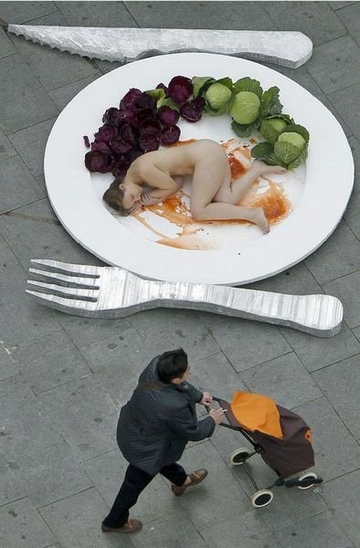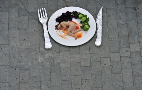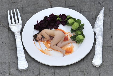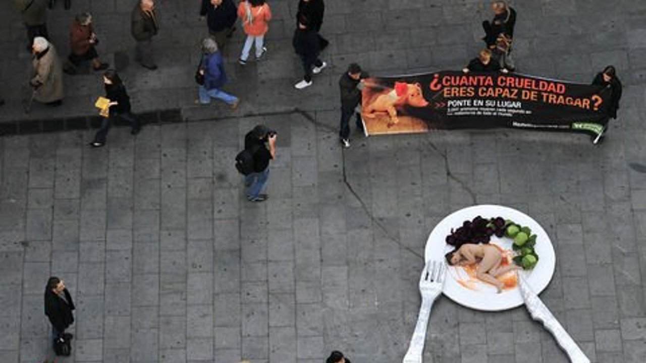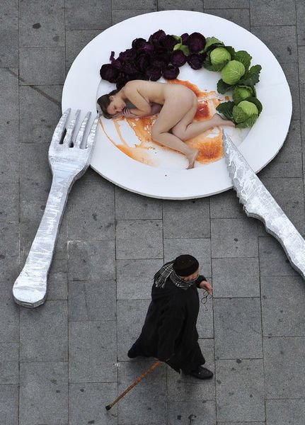 Hayvan katliamlarına çıplak protesto!