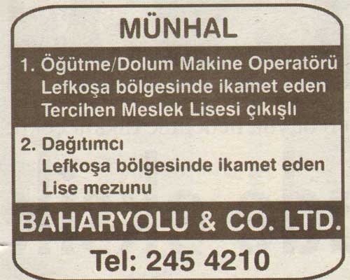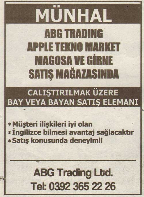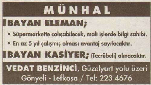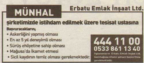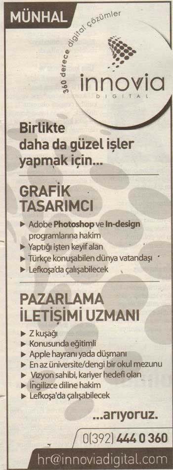 Kıbrıs Gazetelerinde yer alan iş ilanları. En üstte yer alan "Tam Ekran Yap" tuşuna basarsanız daha büyük halini görebilirsiniz.