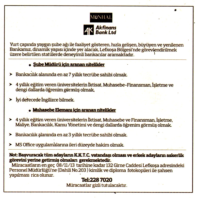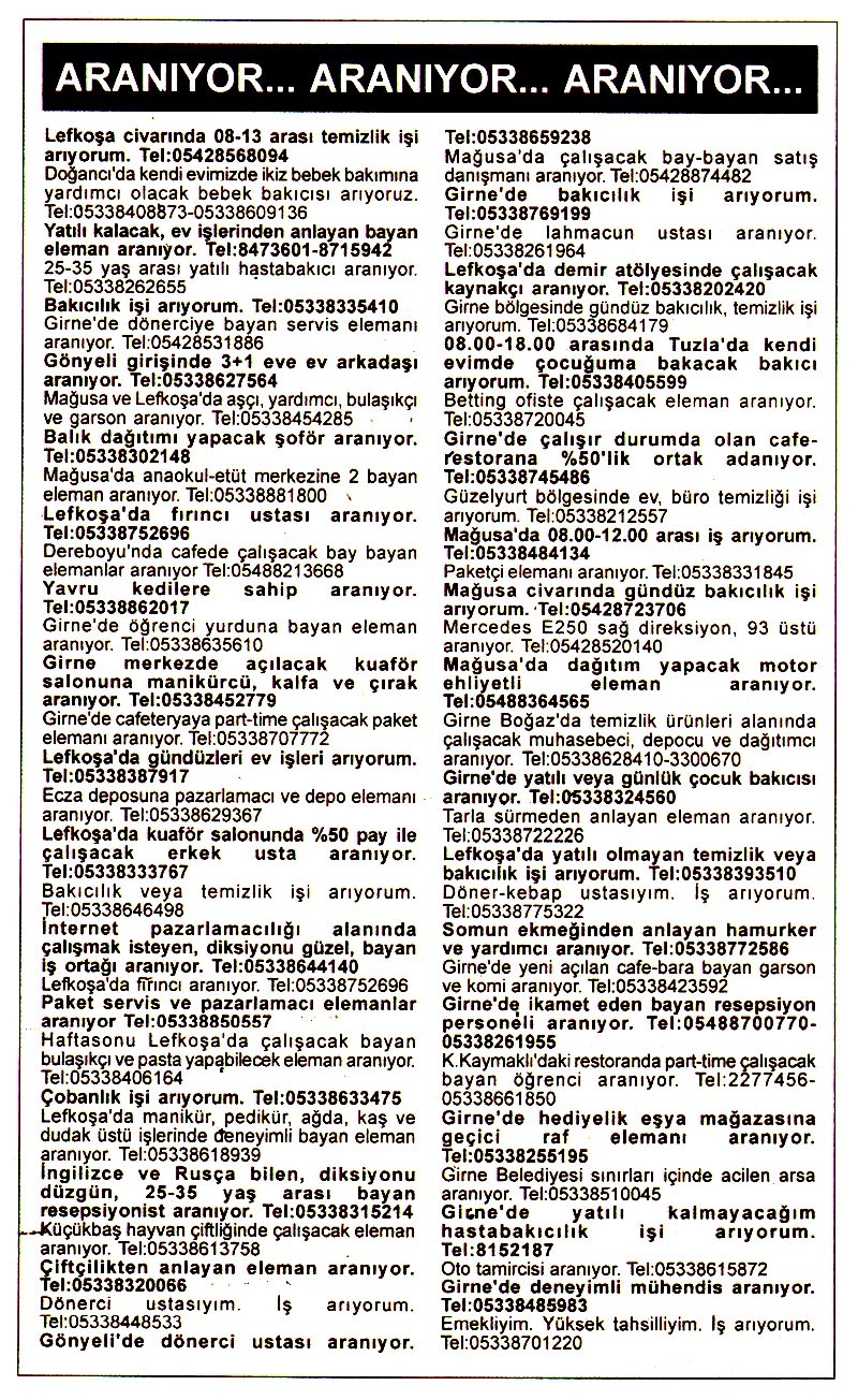 Kıbrıs Gazetelerinde yer alan iş ilanları. En üstte yer alan "Tam Ekran Yap" tuşuna basarsanız daha büyük halini görebilirsiniz.