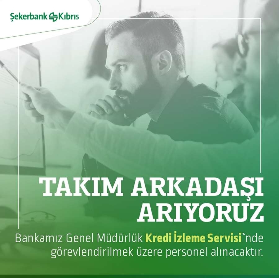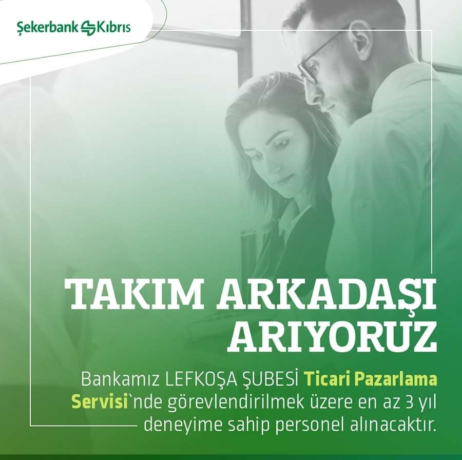 Bankamız Lefkoşa Şubesi Ticari Pazarlama Servisi'nde görevlendirilmek üzere en az 3 yıl deneyime sahip personel alınacaktır.