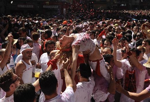 Chupinazo olarak bilinen festivalin açılışı, yetkililerin belediye binasının önünde asılı olan Bask bayrağını indirmeye çalışmasından dolayı 20 dakika geç yapıldı.