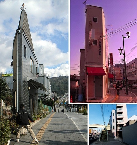 Apartmanların arasındaki küçücük dar arsalara apartman yapan Japonlar, buraları yaşanabilir hale gitiriyor.