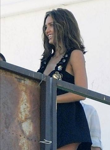 Jessica Alba terasa mini etekle çıkınca frikik verdi!