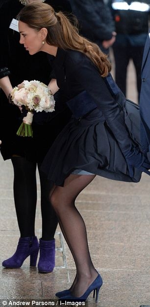 Bir yandan gülümsemeye ve sohbet etmeye devam eden Middleton bir yandan da eteğini düzeltmeye çabaladı.