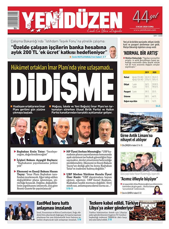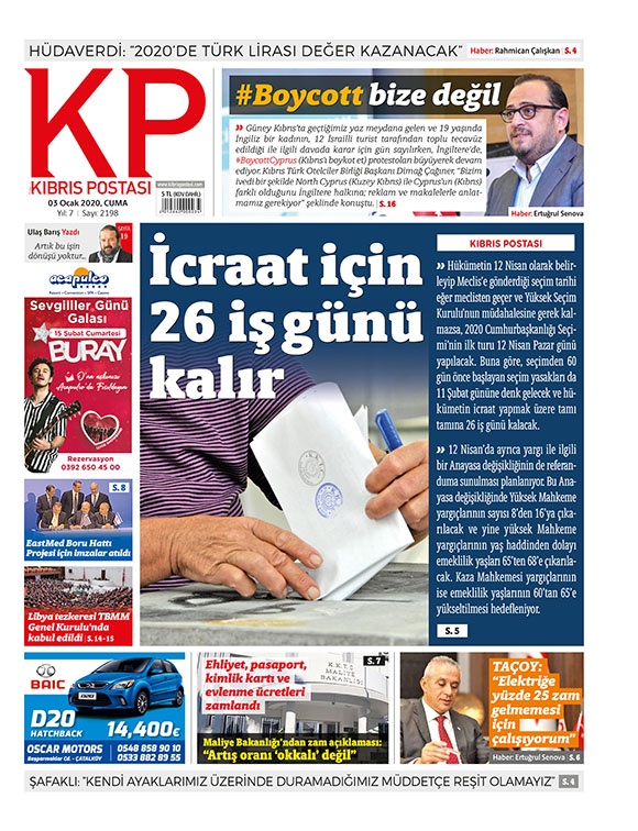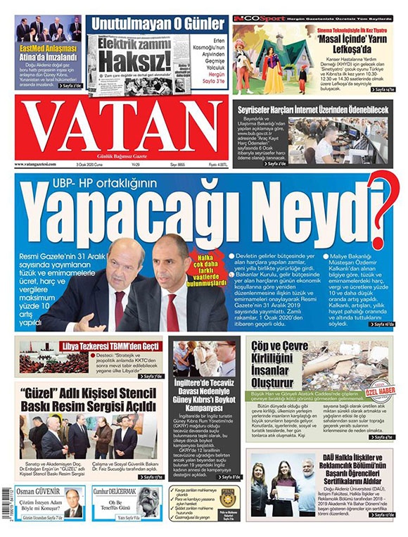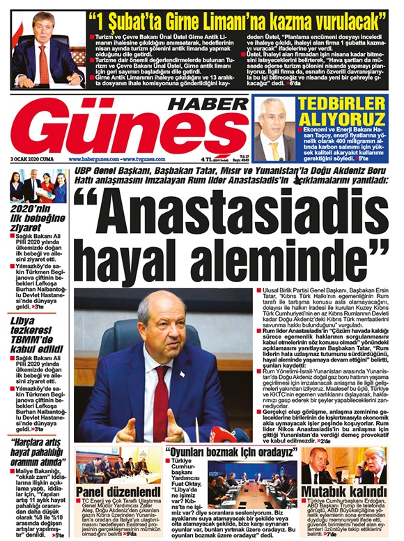 KKTC Gazete Manşetleri 03 Ocak 2020