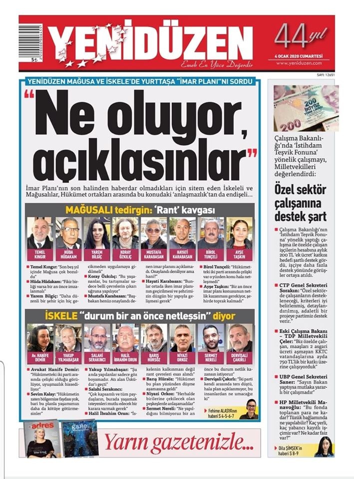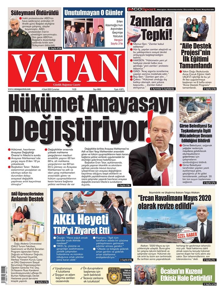 KKTC Gazete Manşetleri 04 Ocak 2020