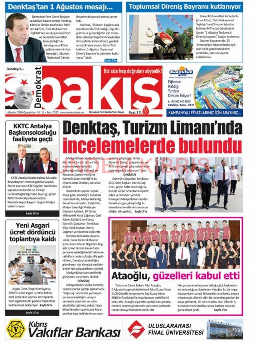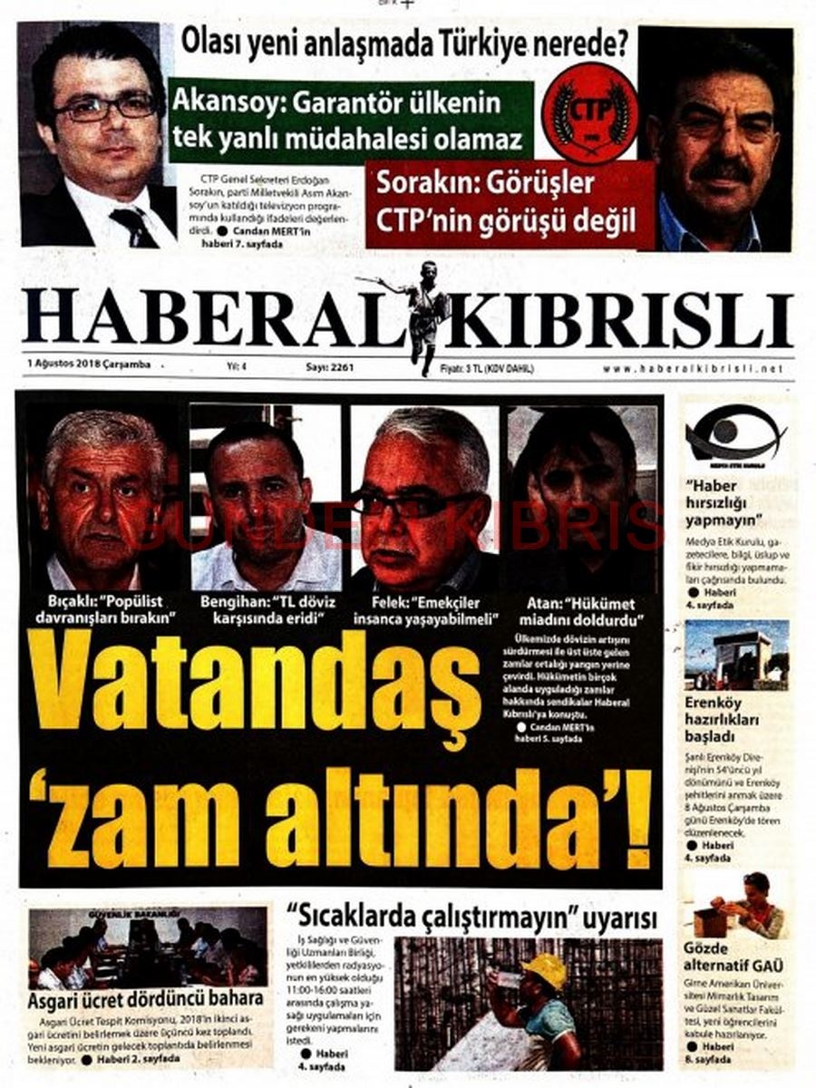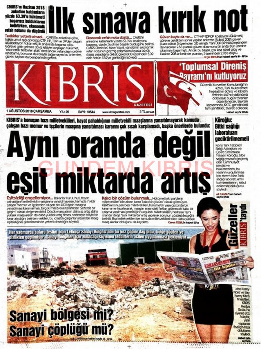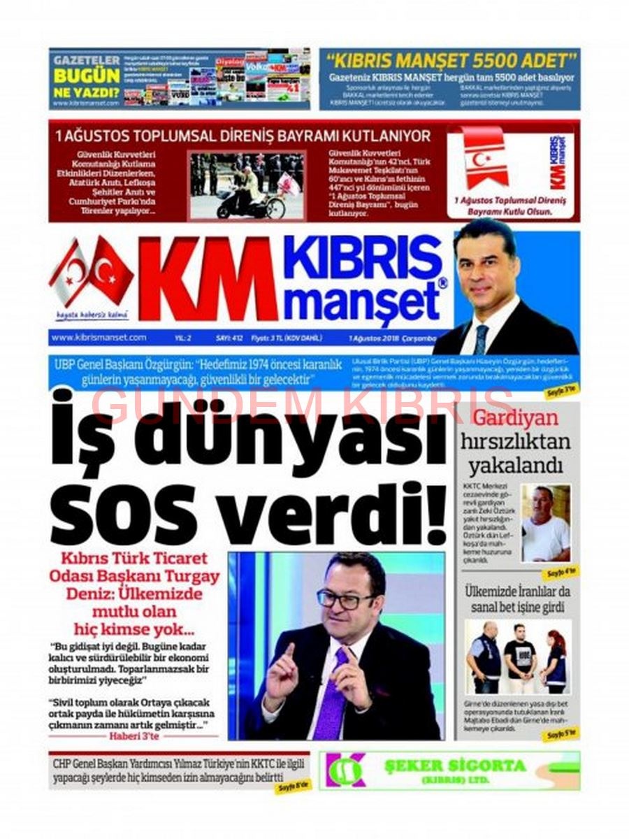 KKTC Gazete Manşetleri 1 Ağustos 2018