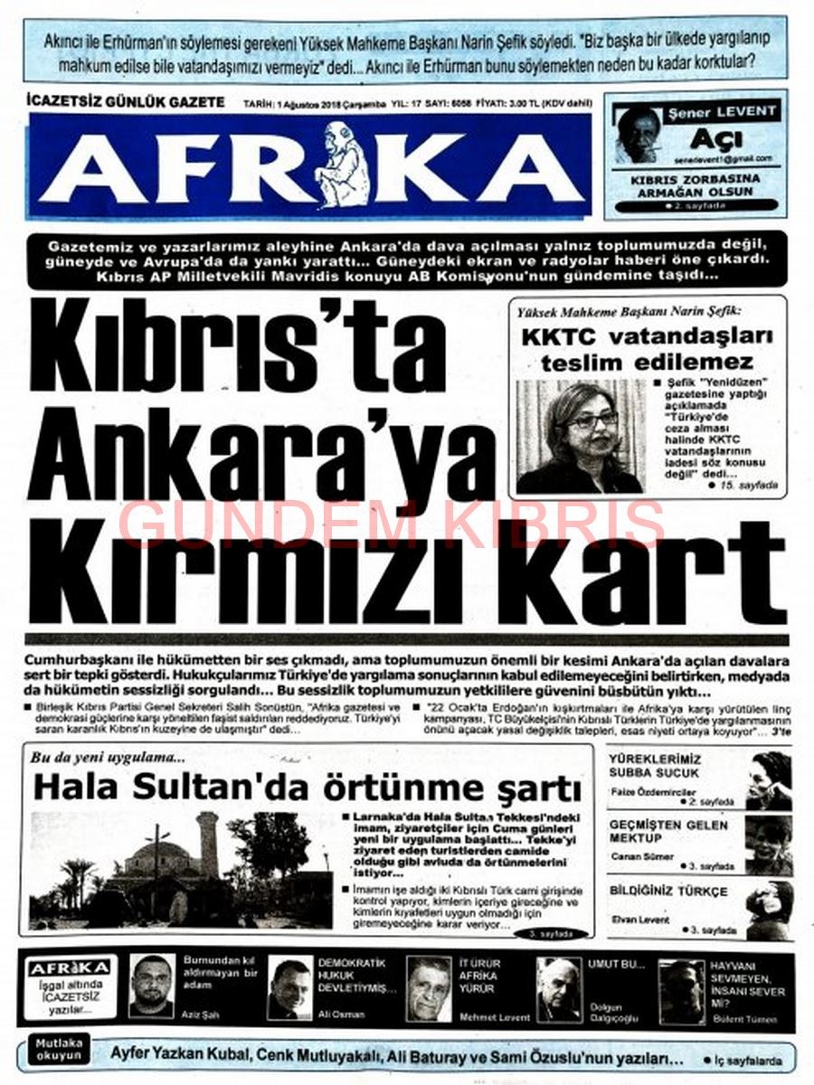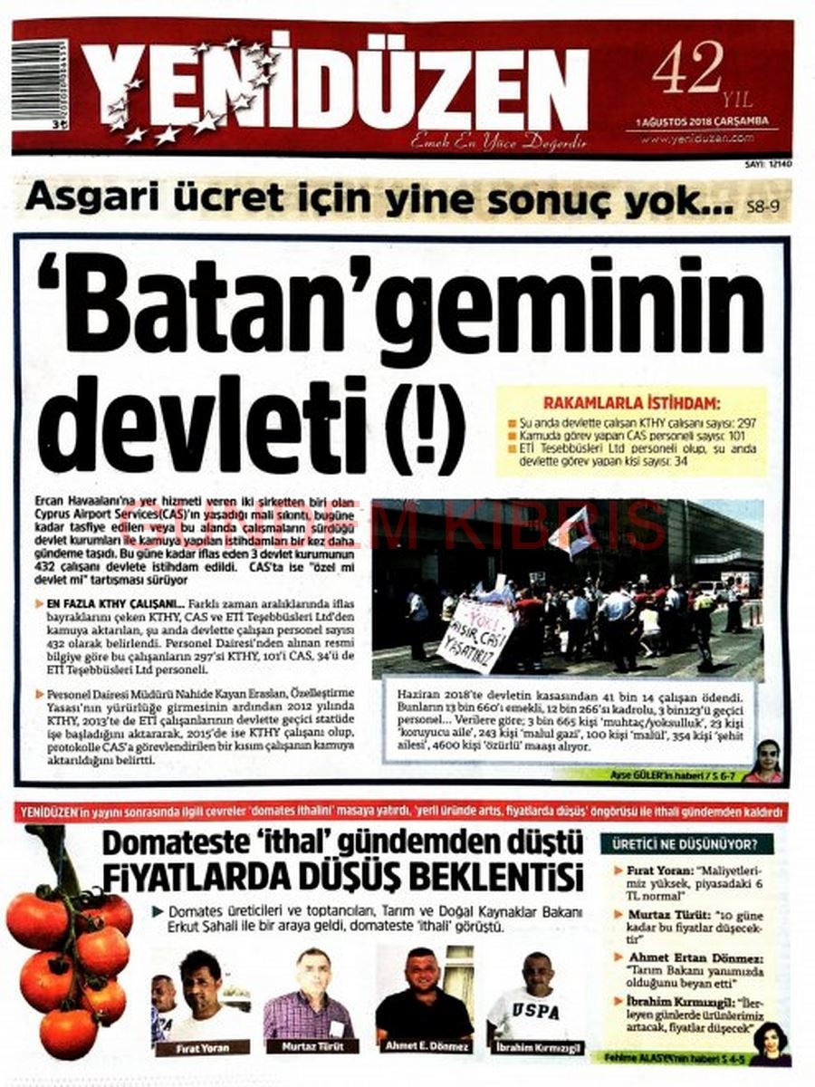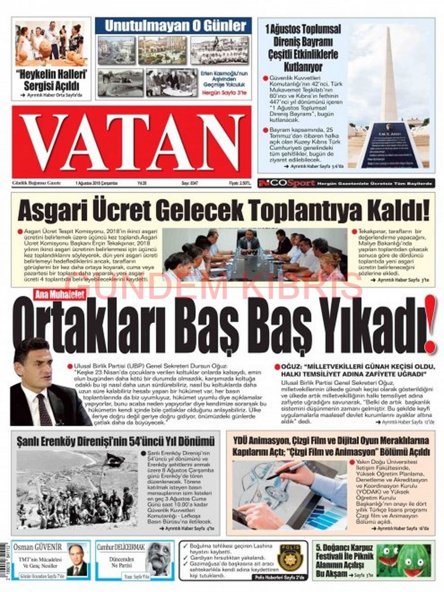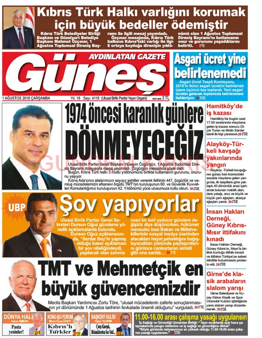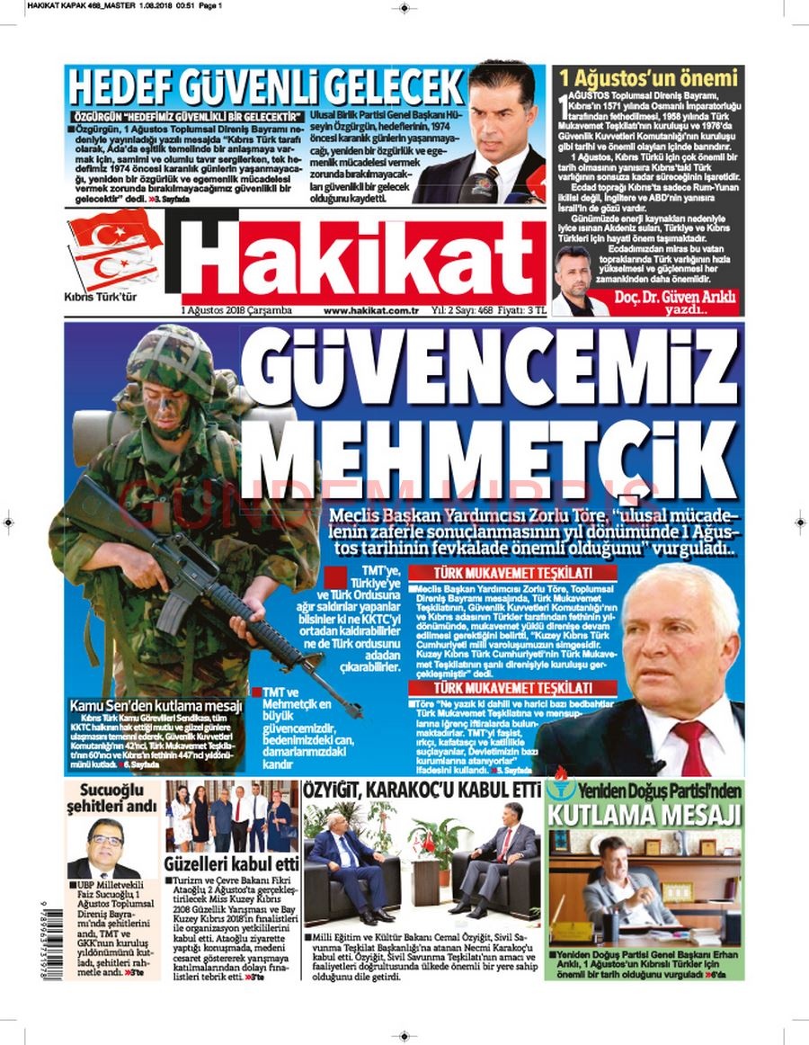 KKTC Gazete Manşetleri 1 Ağustos 2018
