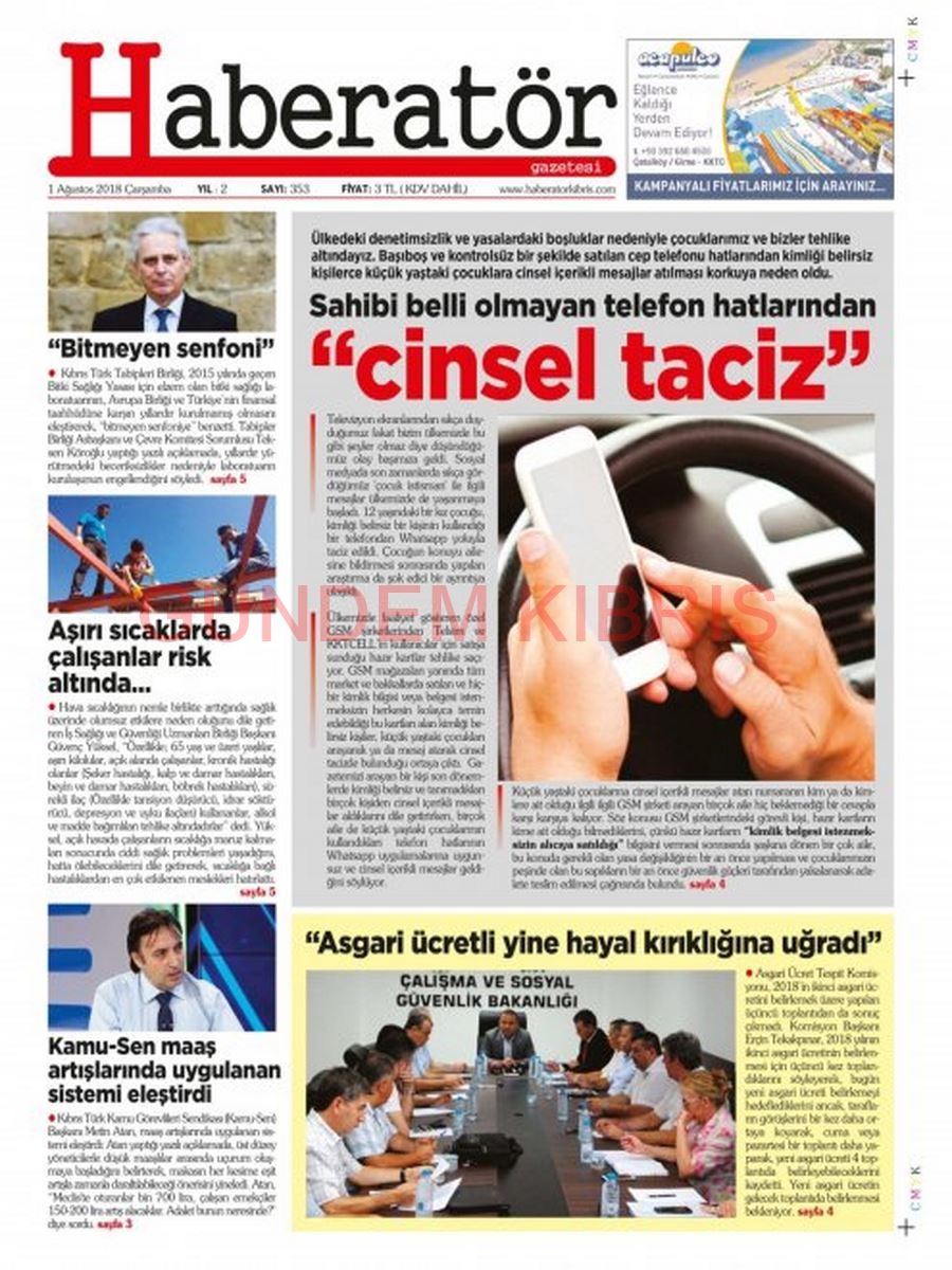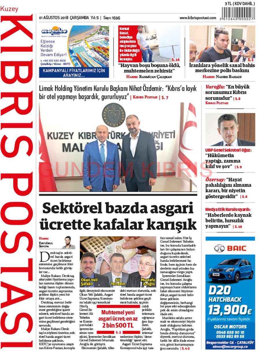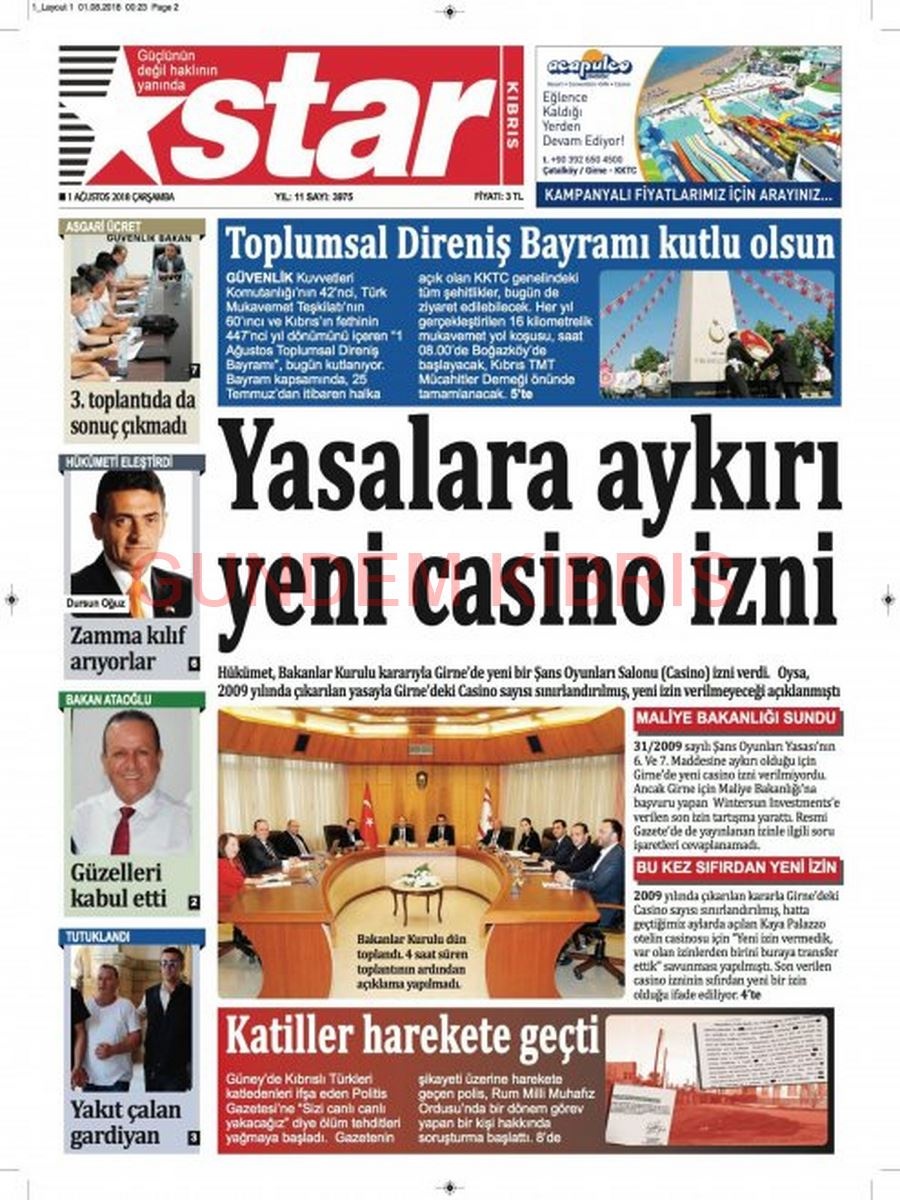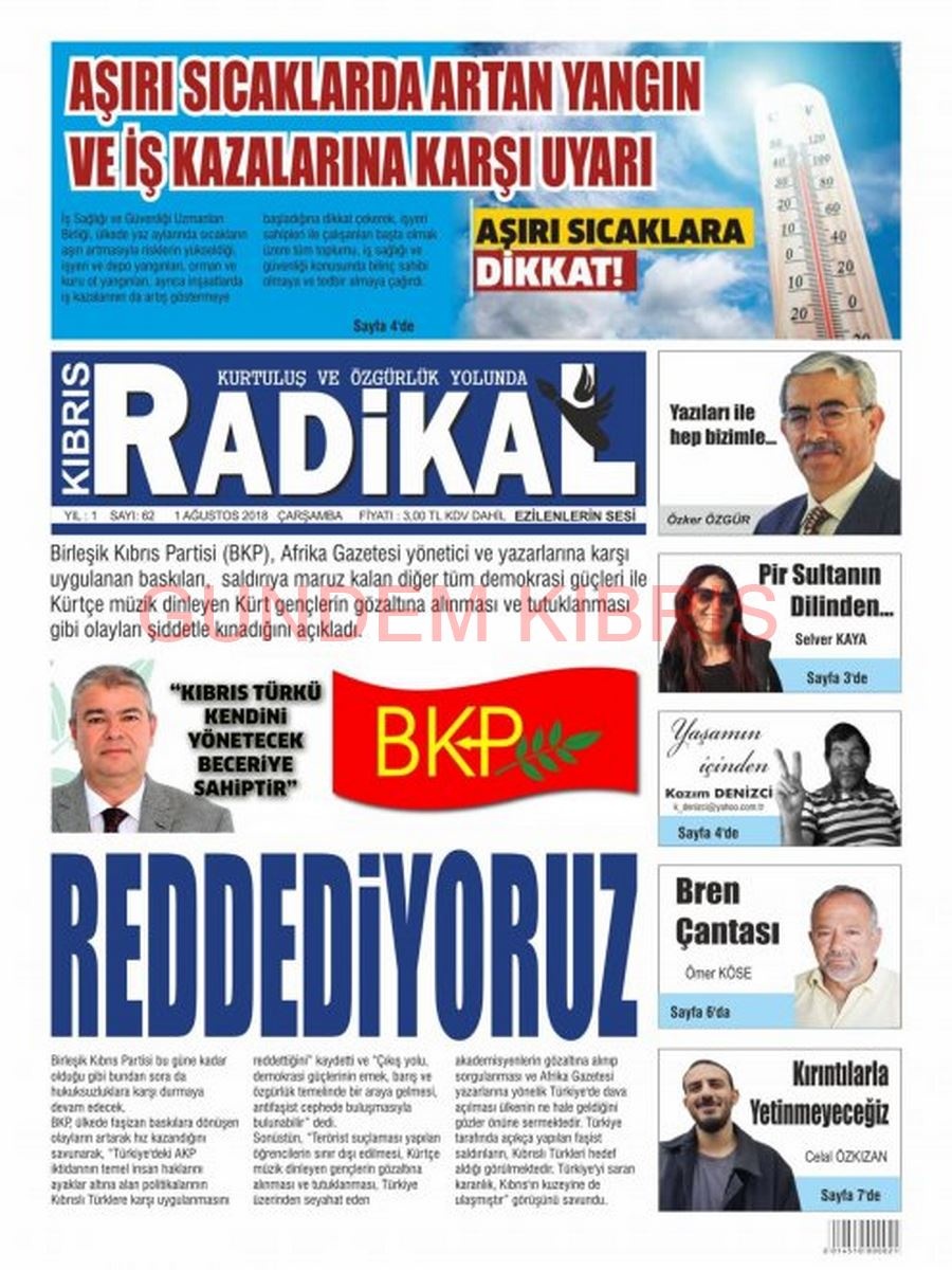 KKTC Gazete Manşetleri 1 Ağustos 2018