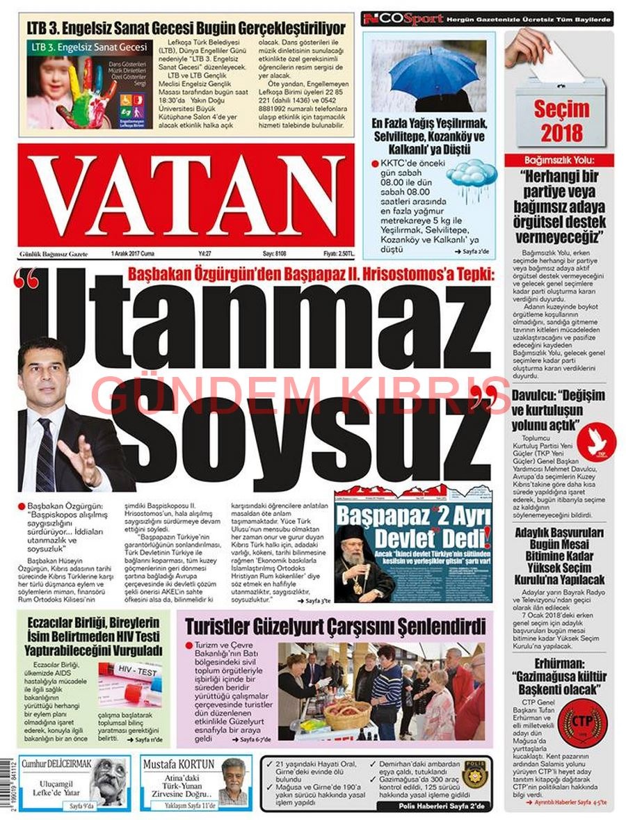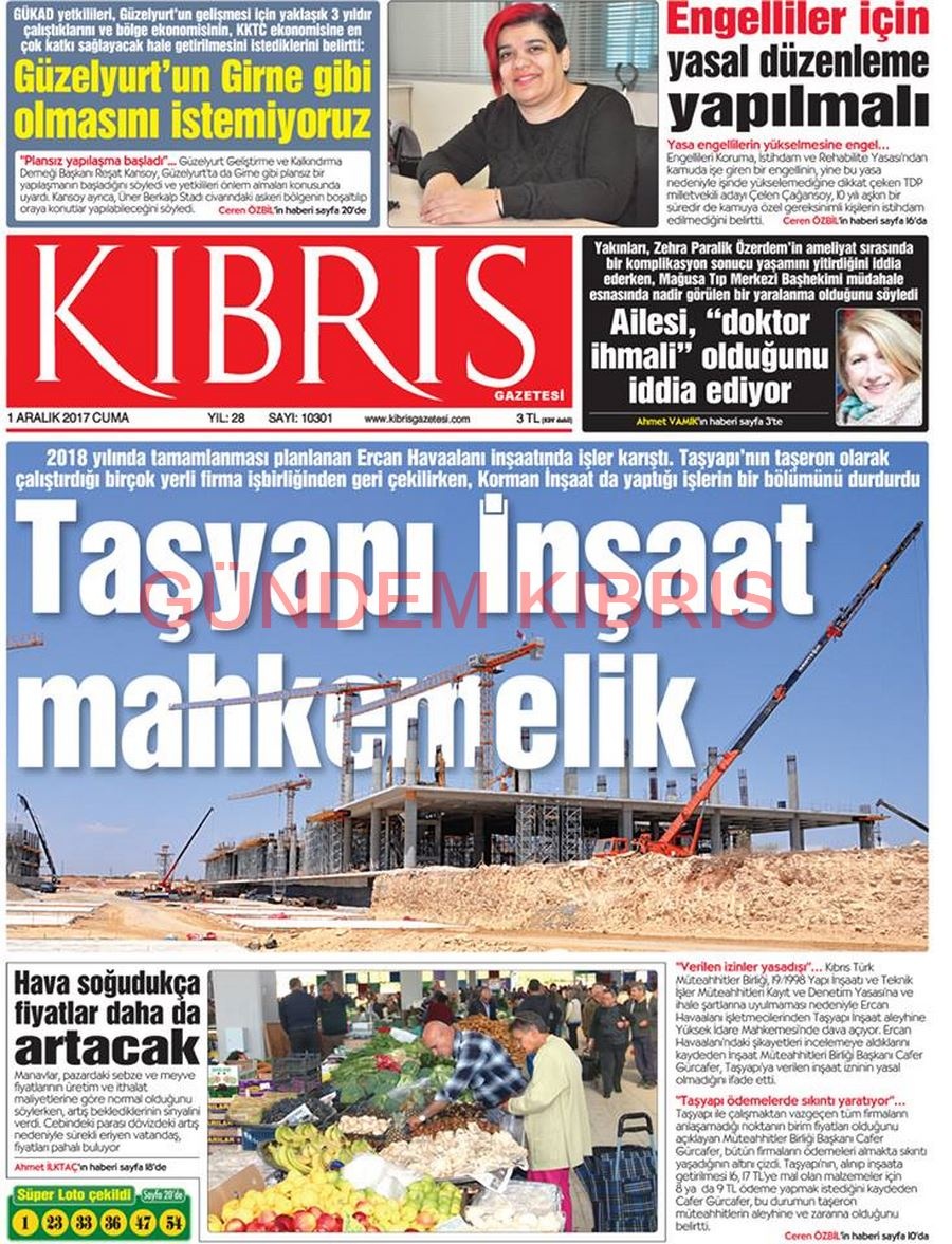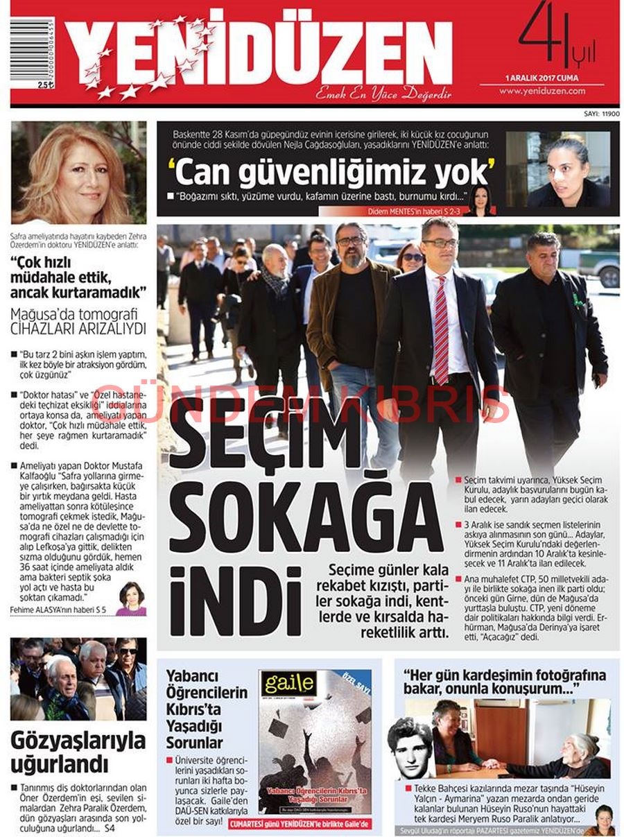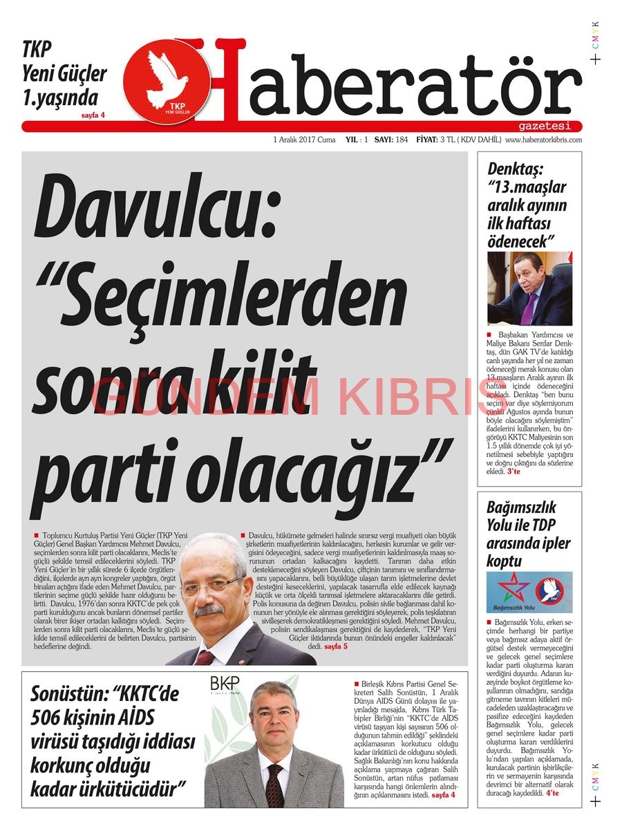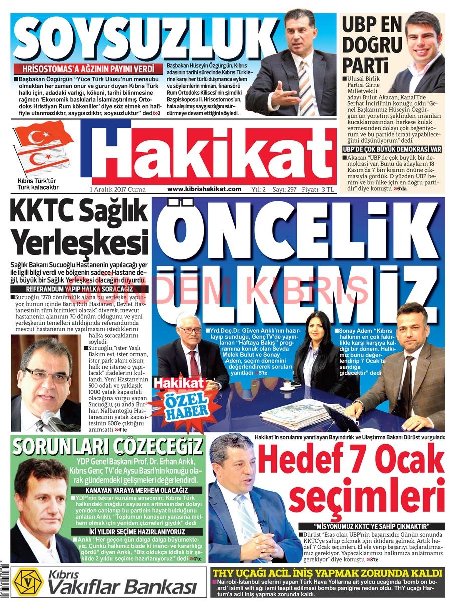 KKTC Gazete Manşetleri 1 Aralık 2017