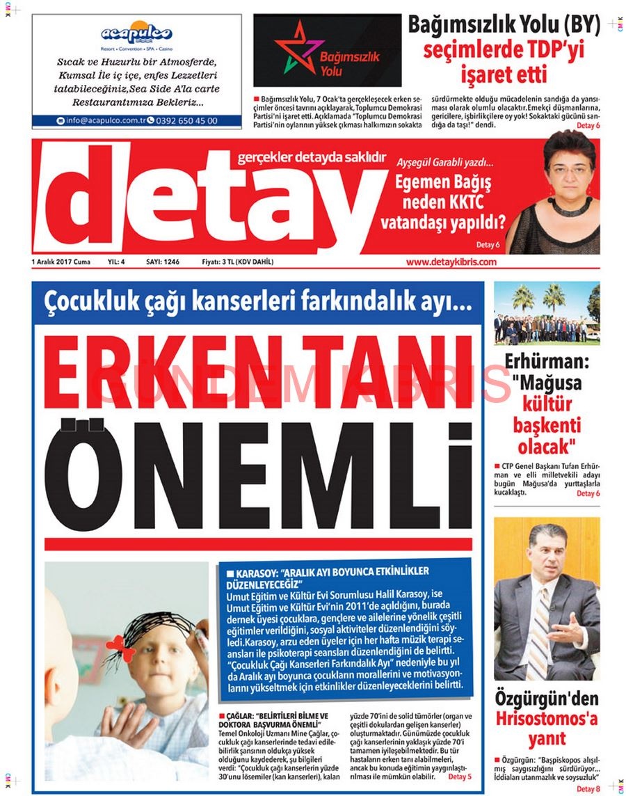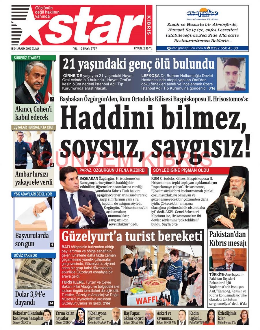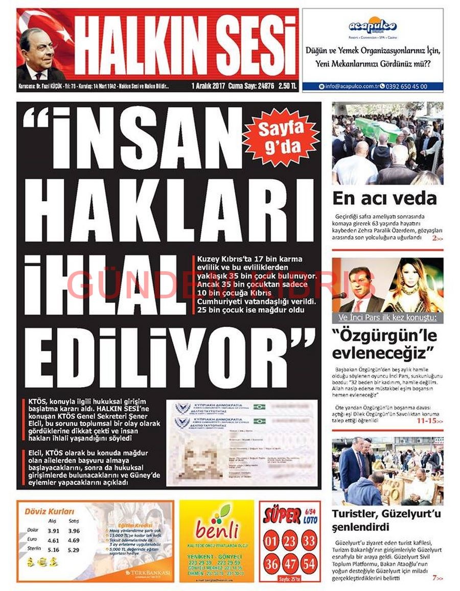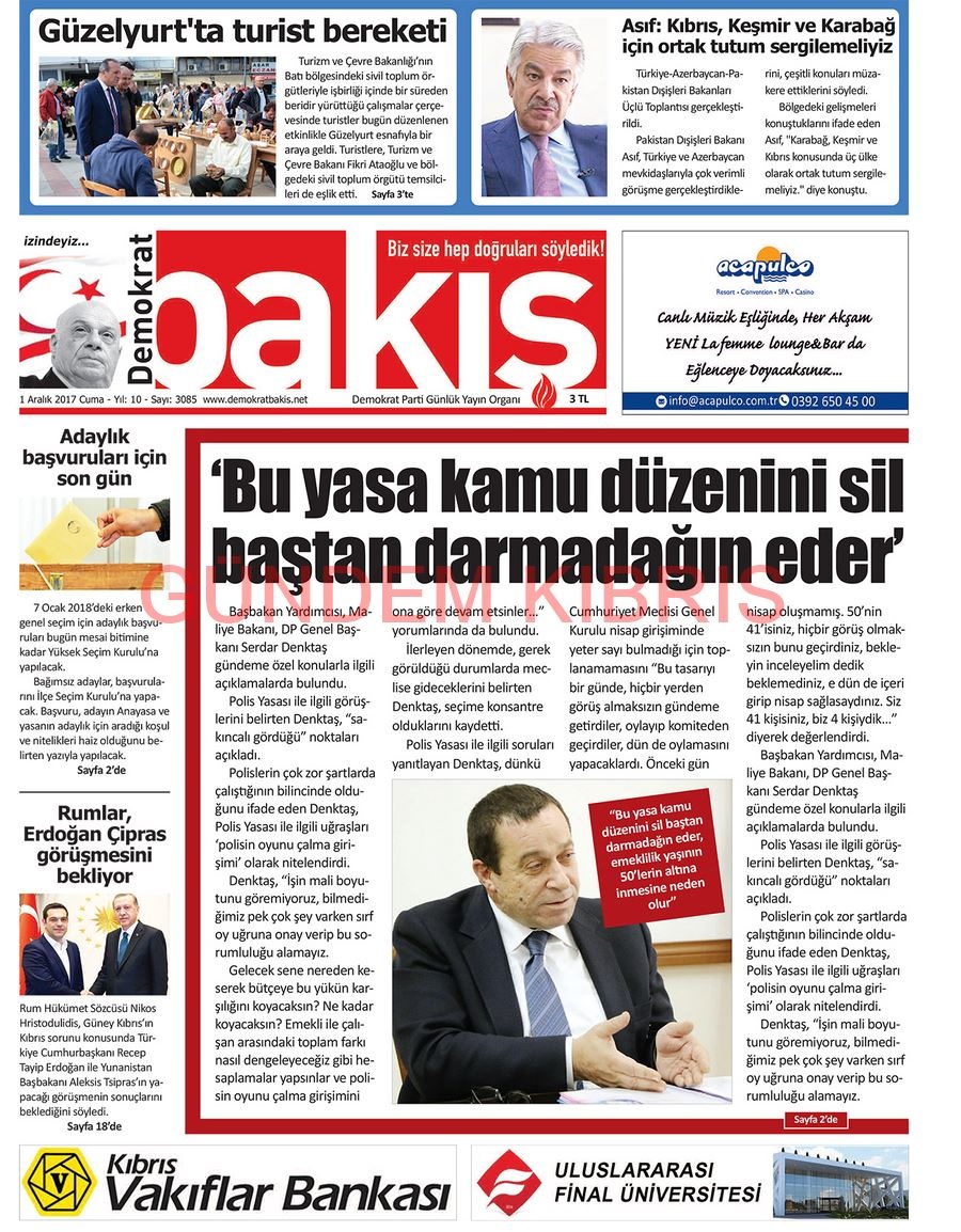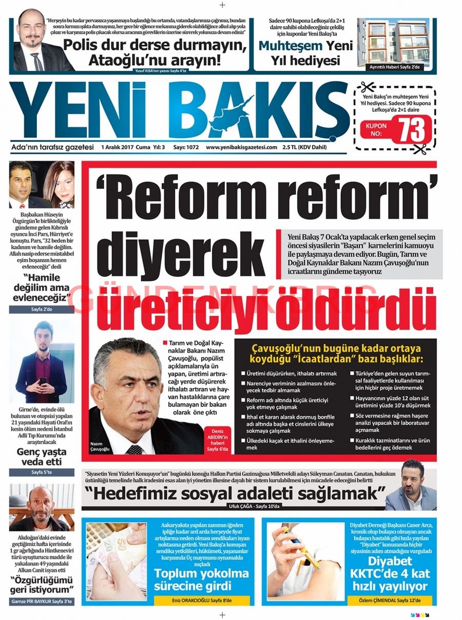 KKTC Gazete Manşetleri 1 Aralık 2017