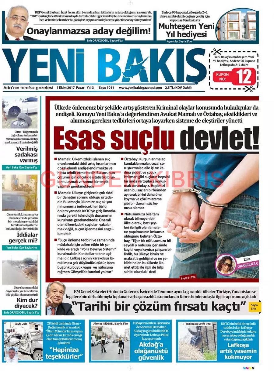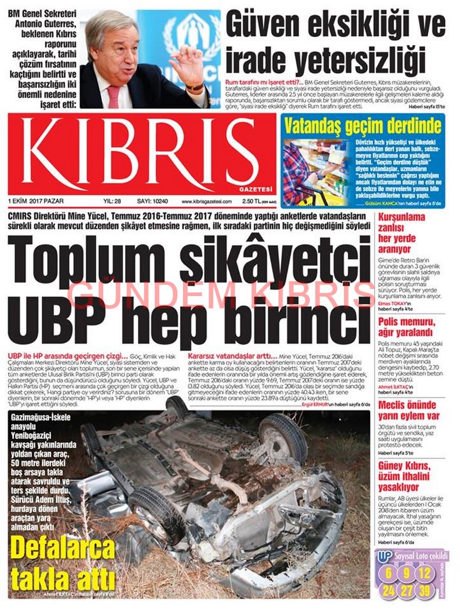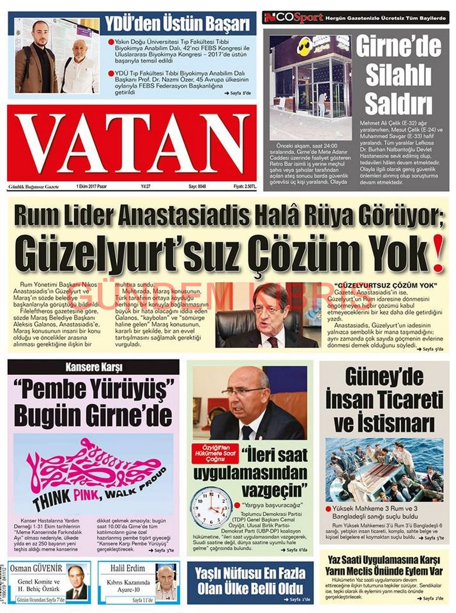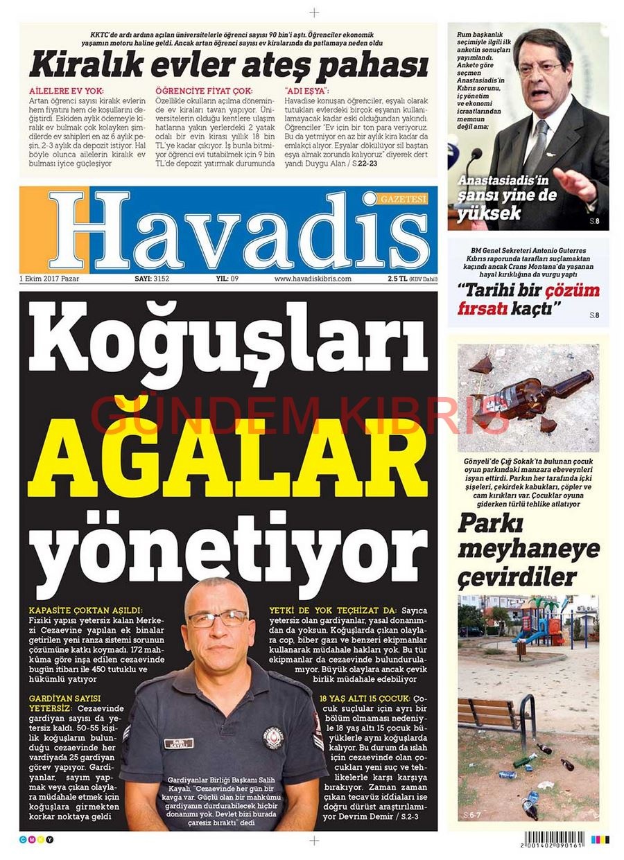 KKTC Gazete Manşetleri 1 Ekim 2017