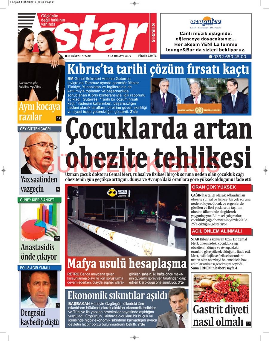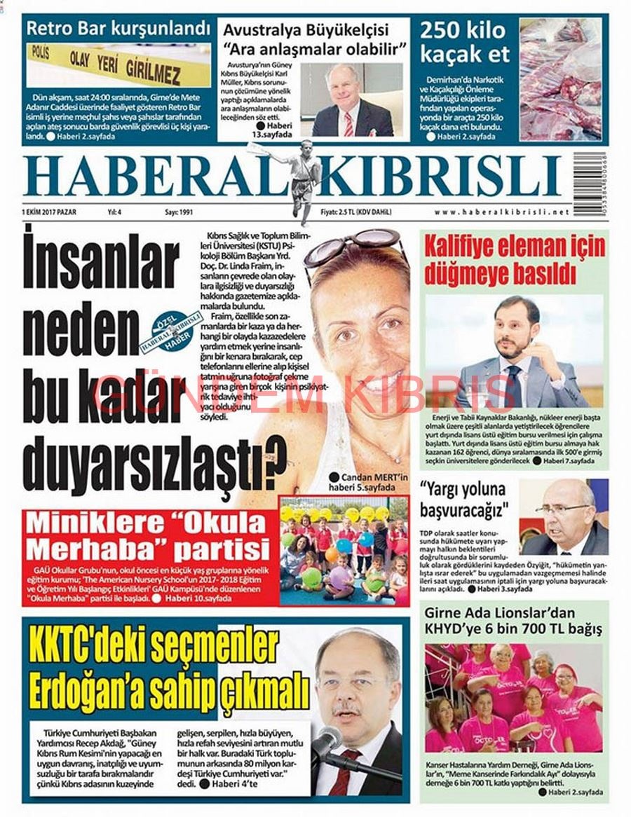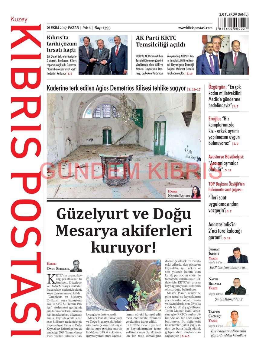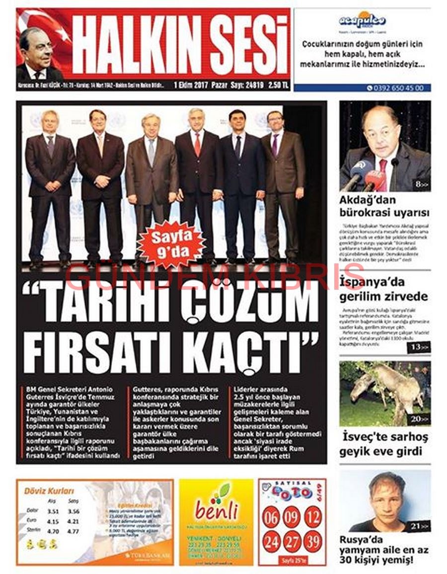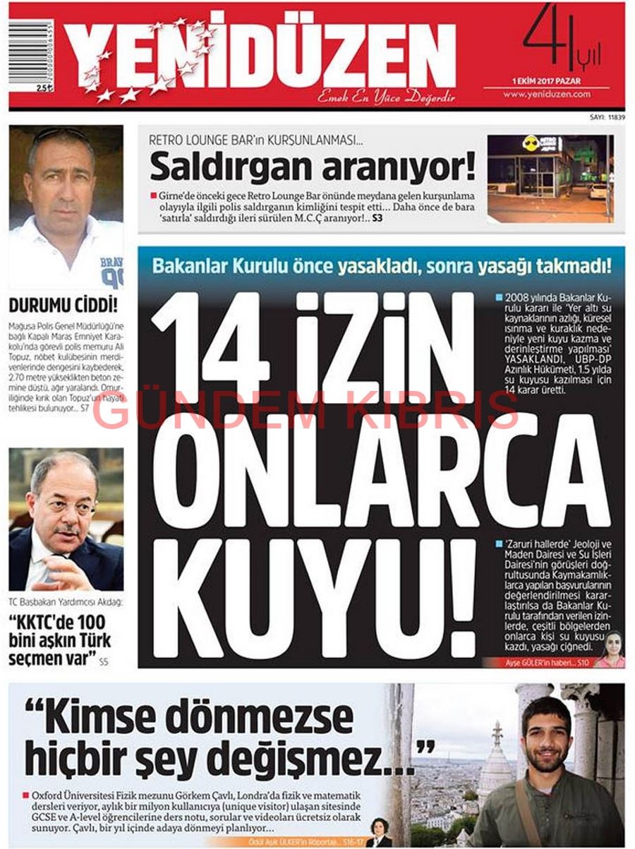 KKTC Gazete Manşetleri 1 Ekim 2017