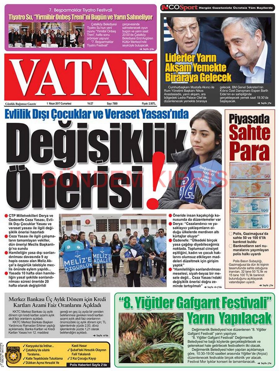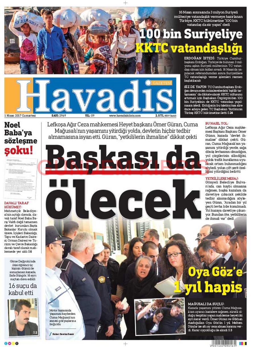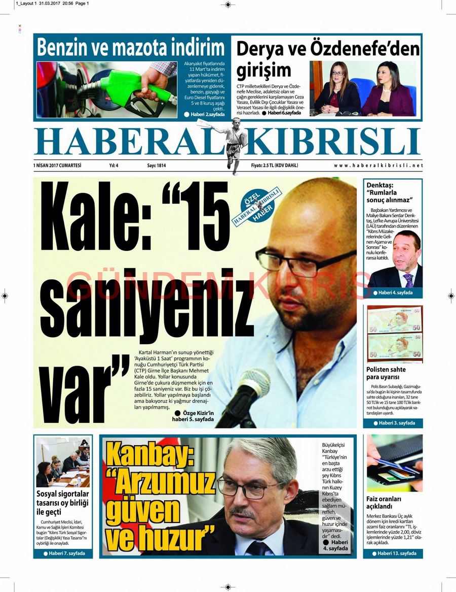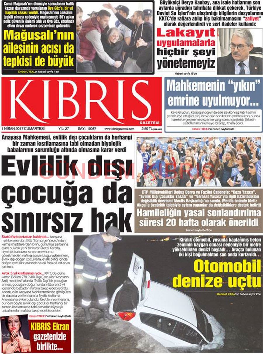 KKTC Gazete Manşetleri 1 Nisan 2017