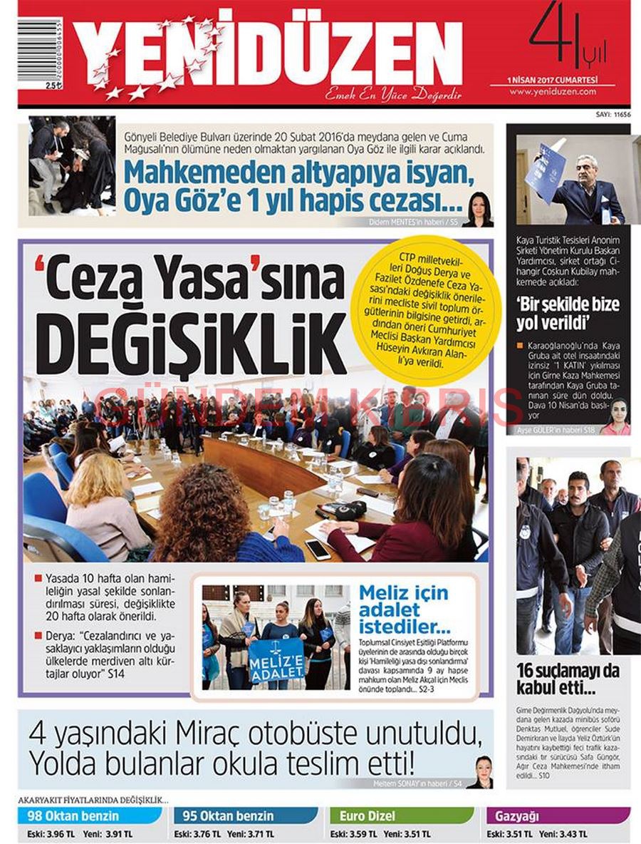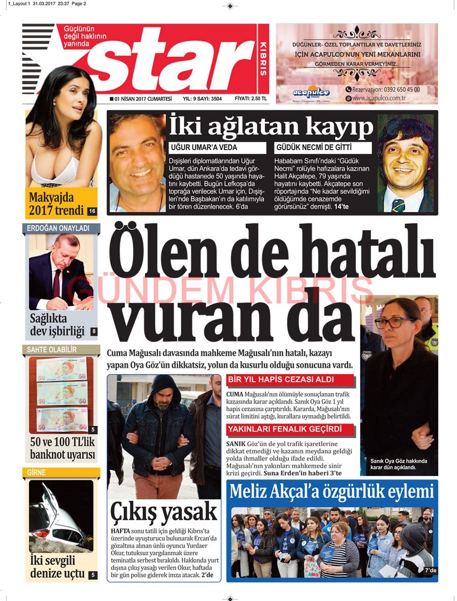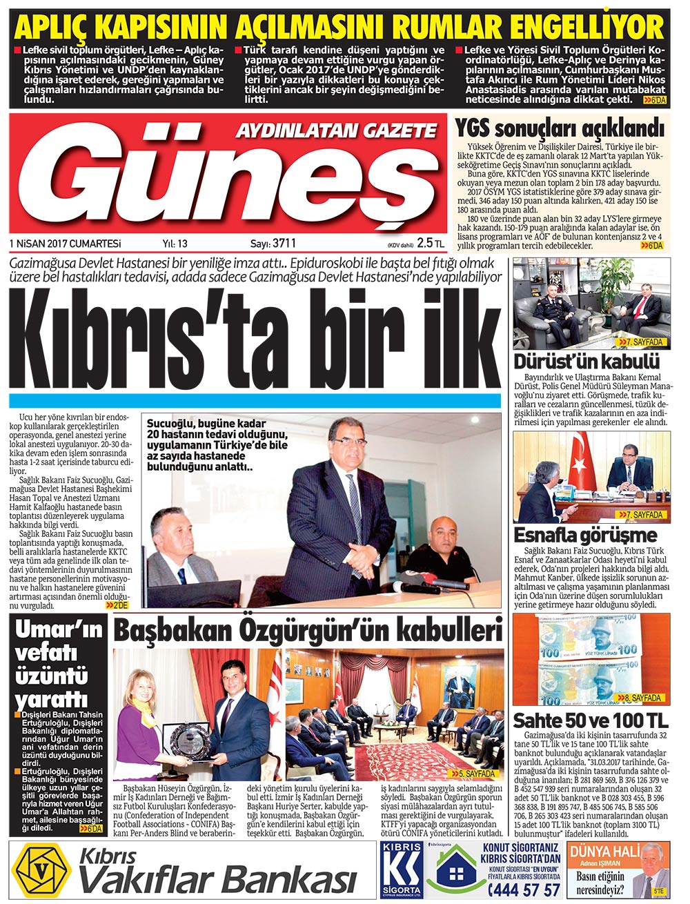 KKTC Gazete Manşetleri 1 Nisan 2017