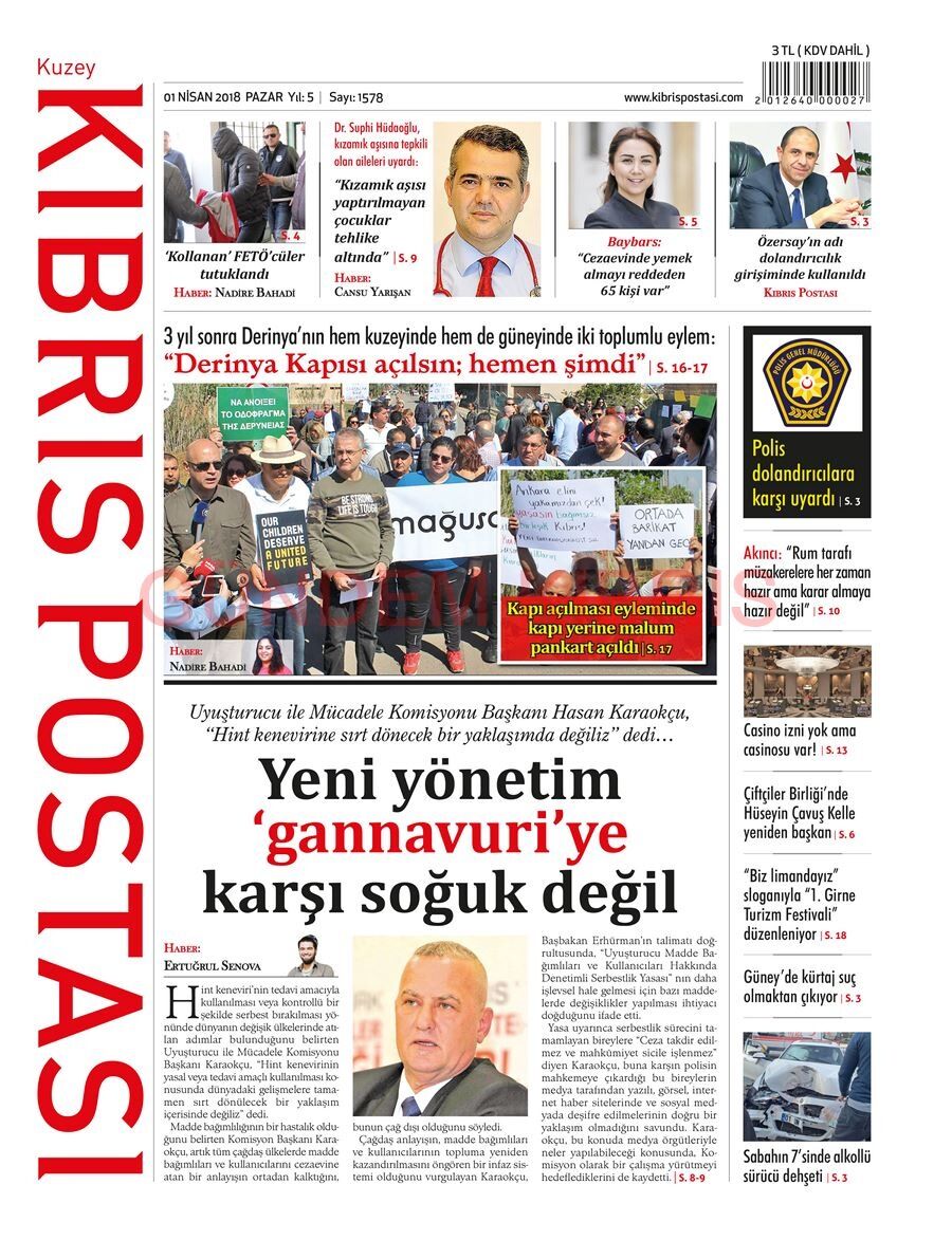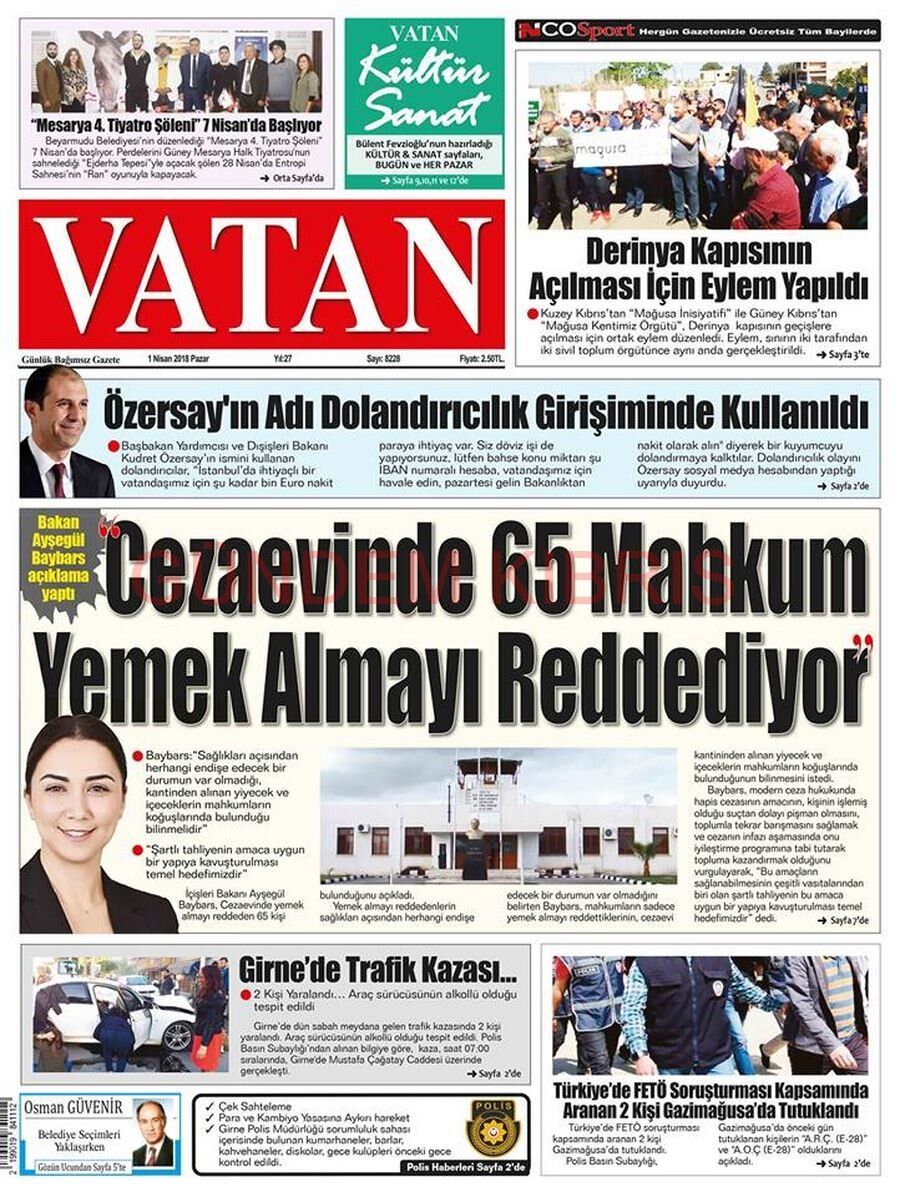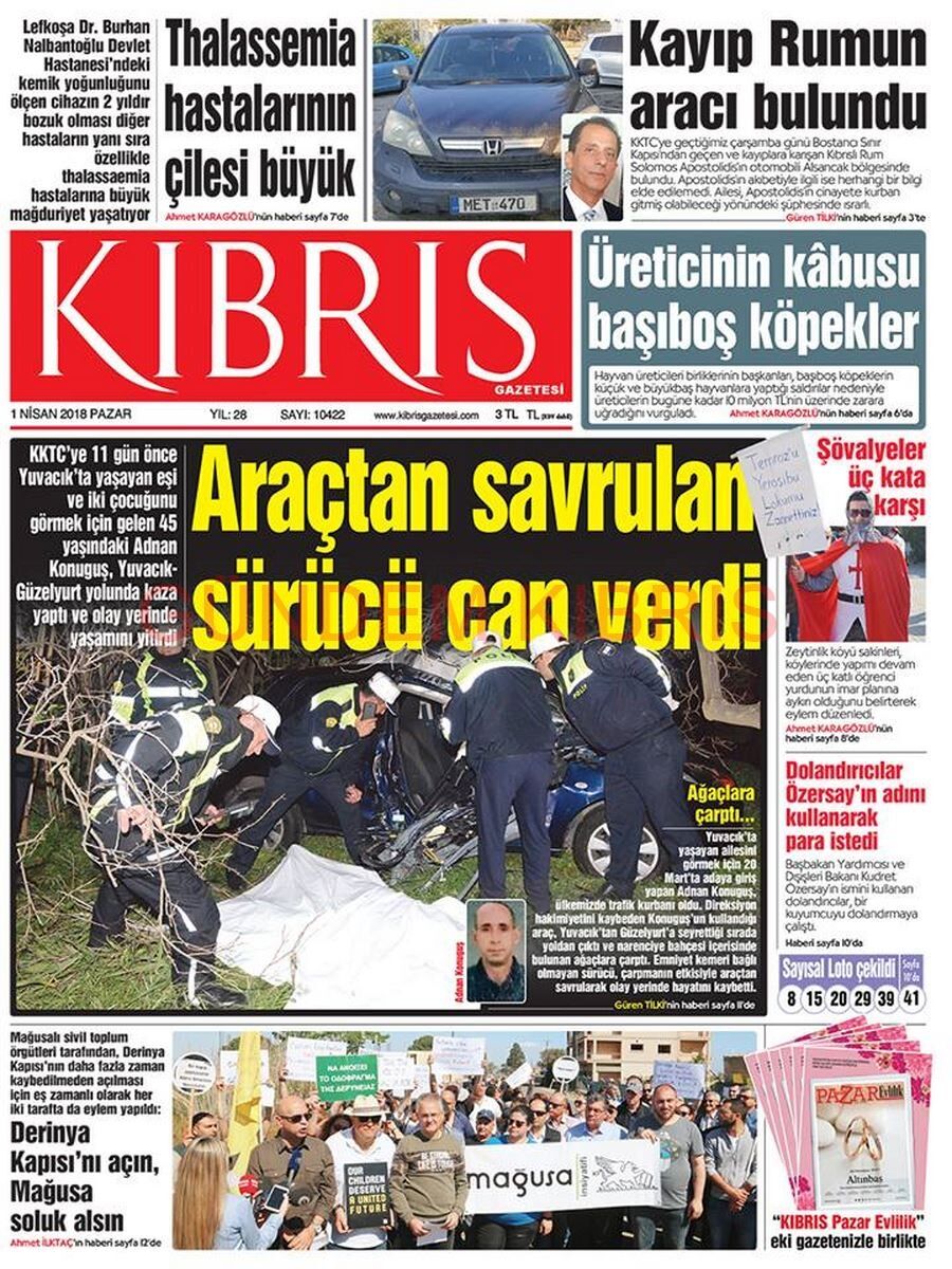 KKTC Gazete Manşetleri 1 Nisan 2018